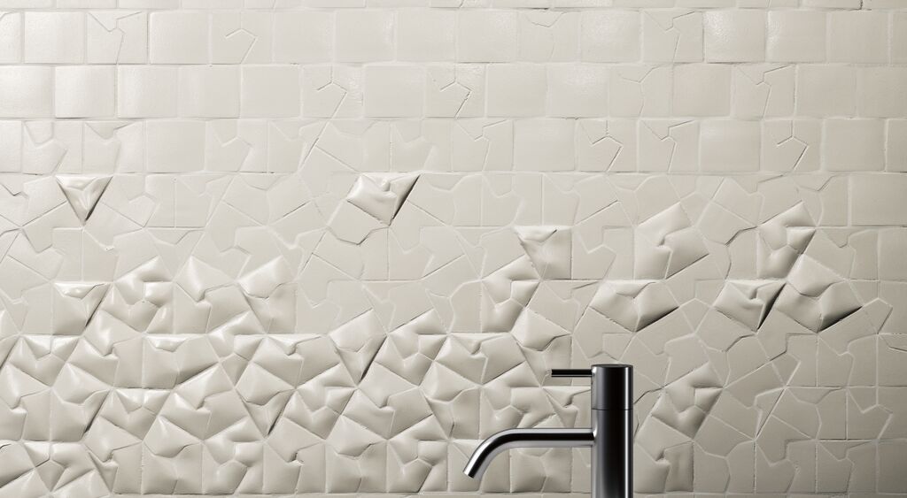 Squar[e] is not just a ceramic tile but also part of a mosaic and of a 3D wall. At 5 x 5.8 x 0.6 cm in size, this tile allows for a variety of designs, even in small spaces. It also facilitates artistic installations that transition seamlessly from a flat, square surface to irregular, three-dimensional reliefs. The transitions from a structured to a random-seeming design can be created in accordance with the user’s personal preferences.