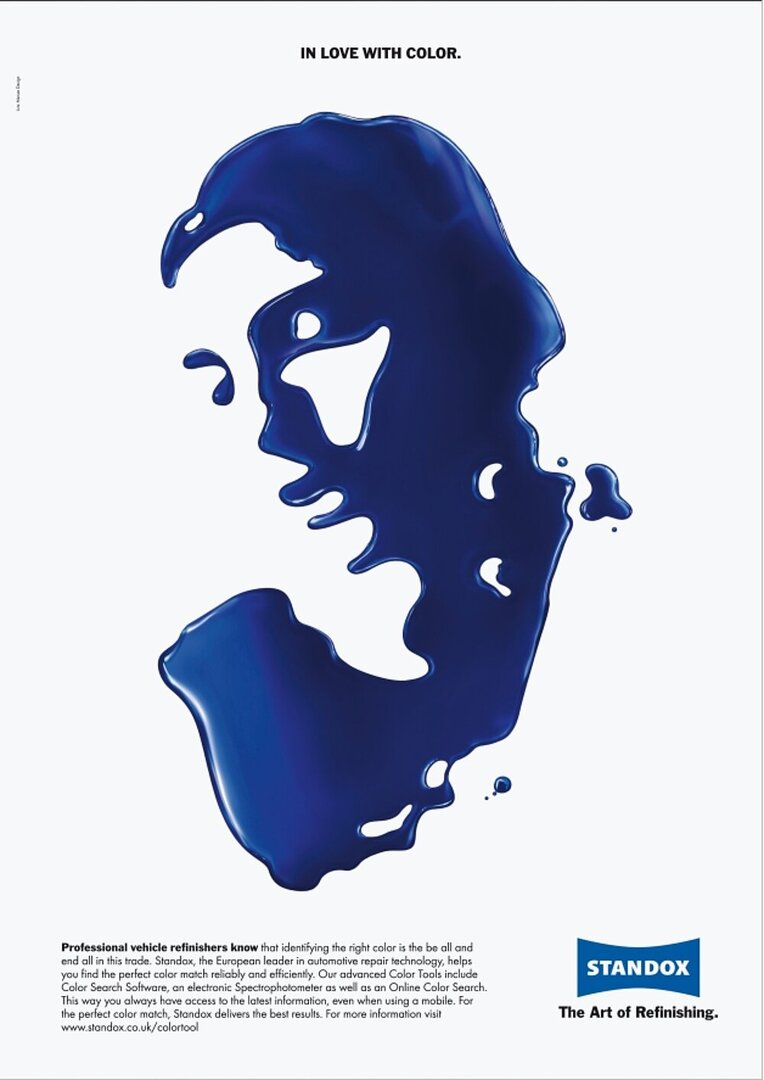 The objective of this innovative image campaign for Standox, a producer of automotive refinish technology, was the development of a concept that could be applied internationally. The appealing motifs look like coincidentally spilled paint and, among other things, take up the shape of a face. They are reminiscent of picture puzzles that reveal their full interpretation only upon a second closer look. The art of varnishing is reinterpreted according to Standox’s corporate philosophy. Short texts explain the brand values and the advantages for customers.