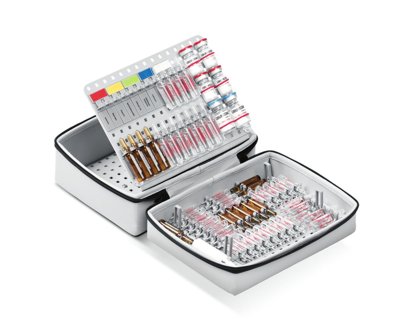 This ampoule kit enables the highly secure and flexible organisation of medicines and is adaptable to the user’s individual requirements.