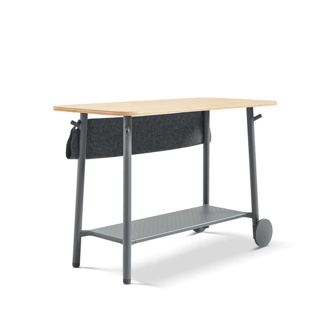 The Steelcase Flex collection was designed after observing collaborative teams, understanding how they work and what they need to deliver high-performance results. For appropriately dynamic practices, the collection offers great flexibility to adapt a space to rapidly changing activities. At the simply and practically designed elevated table, spontaneous meetings can be arranged and notes can be taken as well as schemes outlined using the materials stored in the compartments. Thanks to its rollers, it can be moved quickly from one place to another.