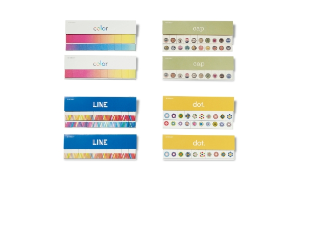 These sticky notes present various graphics. The series of patterns is inspired by nature such as leaves or insects, and other patterns made of tools, dots, lines, colours, bottle caps or alphabets. The zigzag structure of the sticky notes is specially designed to carry different sizes of notes up to 30 kinds. Depending on the pattern or colour, different types of papers are used to represent the best of its character and to enhance the adhesive strength.