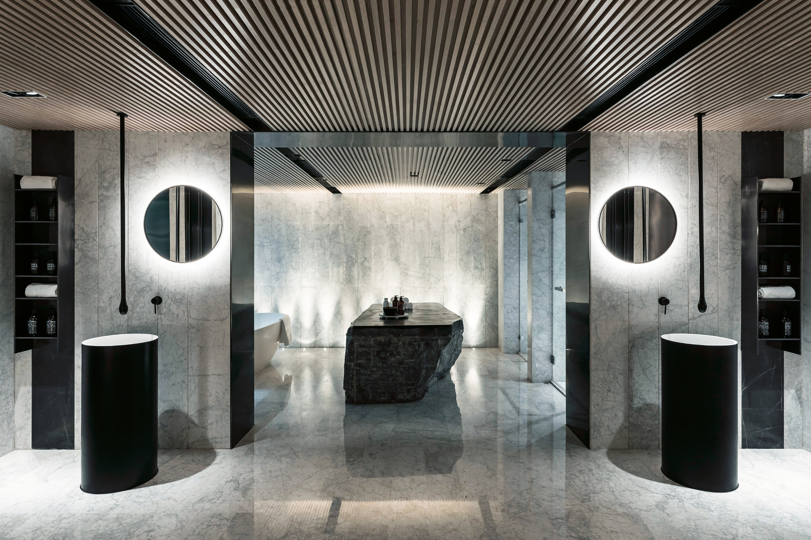 This interior decoration of a show flat manages to create an oasis of calm and naturalness right in the centre of the bustling city centre of Beijing. The main materials used are wood, stone and marble – together with a colour concept based on shades of grey and brown. They exude a feeling of harmony. An important design element is the use of plants, but not only for the outdoor area. They also give a green accent to the interior furnishing, thereby reflecting the contemporary, natural living concept.