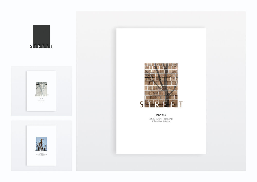 Due to commercialisation and public ignorance, the trees in Gangnam city are struggling to survive and are slowly disappearing. The brand “sTREEt” was created to draw attention to the disappearance of the trees in the streets. The rectangular shaped logo was designed with a frame in mind, inducing the audience to actually look at the street trees. Posters were placed at the entrance of a shopping street to get people’s attention. The interactive brochure and the window canvas were placed along the shopping street, both with rectangular holes that act as viewfinders. The website, designed with the rectangular shape in mind, was set up to collect signatures for a petition to protect the street trees.