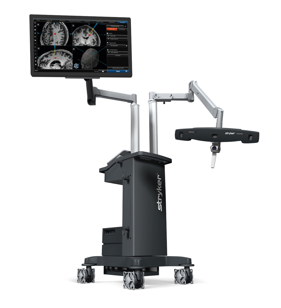 The products of the Stryker navigation platform display the exact location of surgical instruments in the body during an operation. The navigation platform’s minimal footprint enables easy manoeuvring and integration of the device in confined operating theatres. The camera arm of NAV3i with its wide range of motion allows flexible placement of the camera. Non-sterile users can operate the software via a tablet PC with touch functionality, while the surgeon follows the location of the instruments on the large full HD screen.