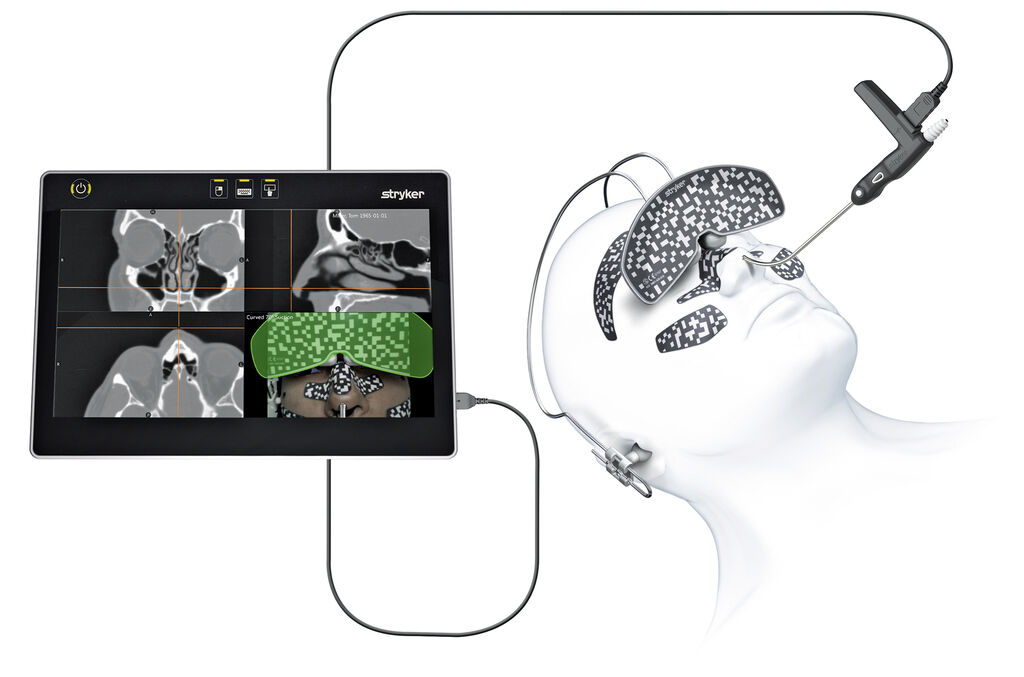 The compact Stryker Profess surgical navigation system assists surgeons with intranasal and sinus surgery by tracking and displaying the location of navigated instruments. The intuitive software, tools and registration kit allow for accurate, safe and cost effective surgery. The touchscreen enabled software leads through the workflow by instructional videos. The lightweight single use tools offer the ability to control the software from the sterile field.