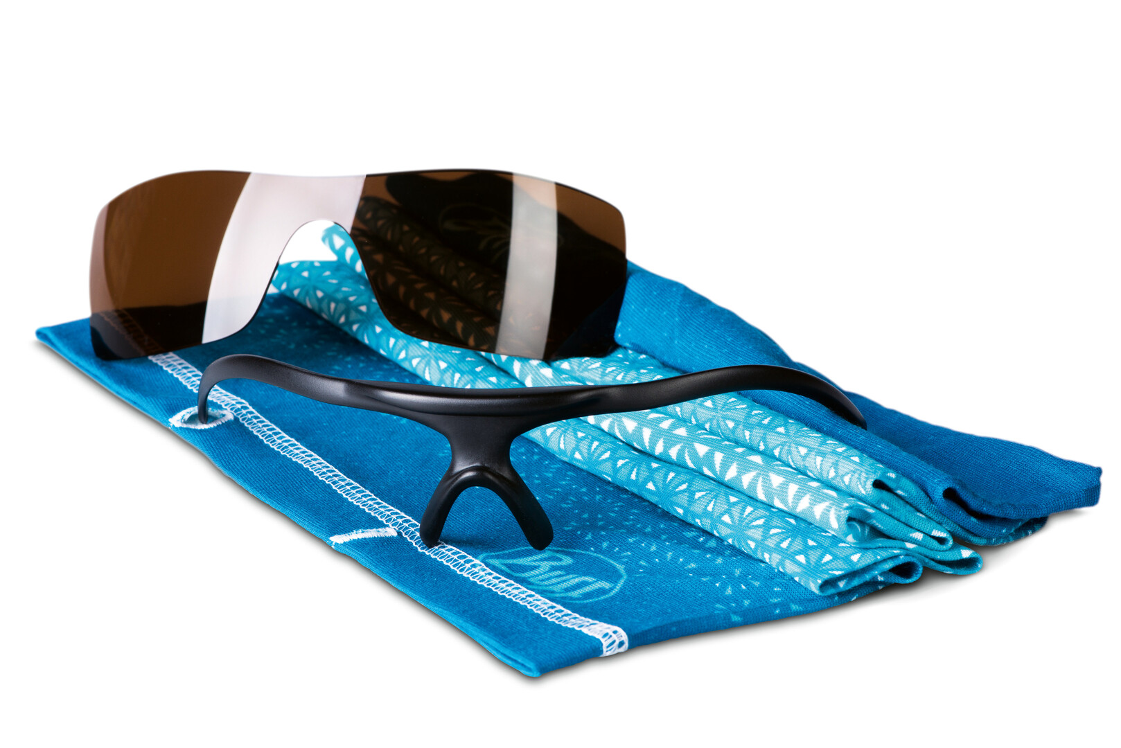 The sunglasses Extreme model closes the gap between sunglasses and textile headgear in outdoor sports. The product features an elastic frame made of plastic, classic lenses and a tubular head covering so that, while running, cycling or hiking, the glasses and the head gear are always at hand. Without temples, sunglasses Extreme offers high wearing comfort, even under bicycle helmets. The specially developed frame connects the glasses and the textile. Handling is easy and practical.