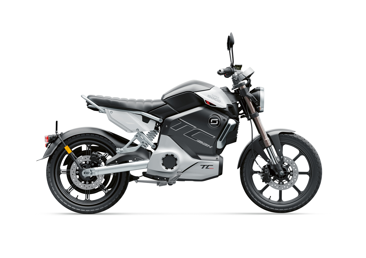 The Super SOCO TC-MAX, with its smart soft-pack lithium-ion battery, is an electric café racer which has been specially designed to give riders enhanced driving pleasure. The central area of the body encloses the battery, which combines advanced technological performance with low weight. The battery is removable, which facilitates charging. A powerful central motor, a high transmission ratio and a maintenance-free belt drive ensure strong acceleration.