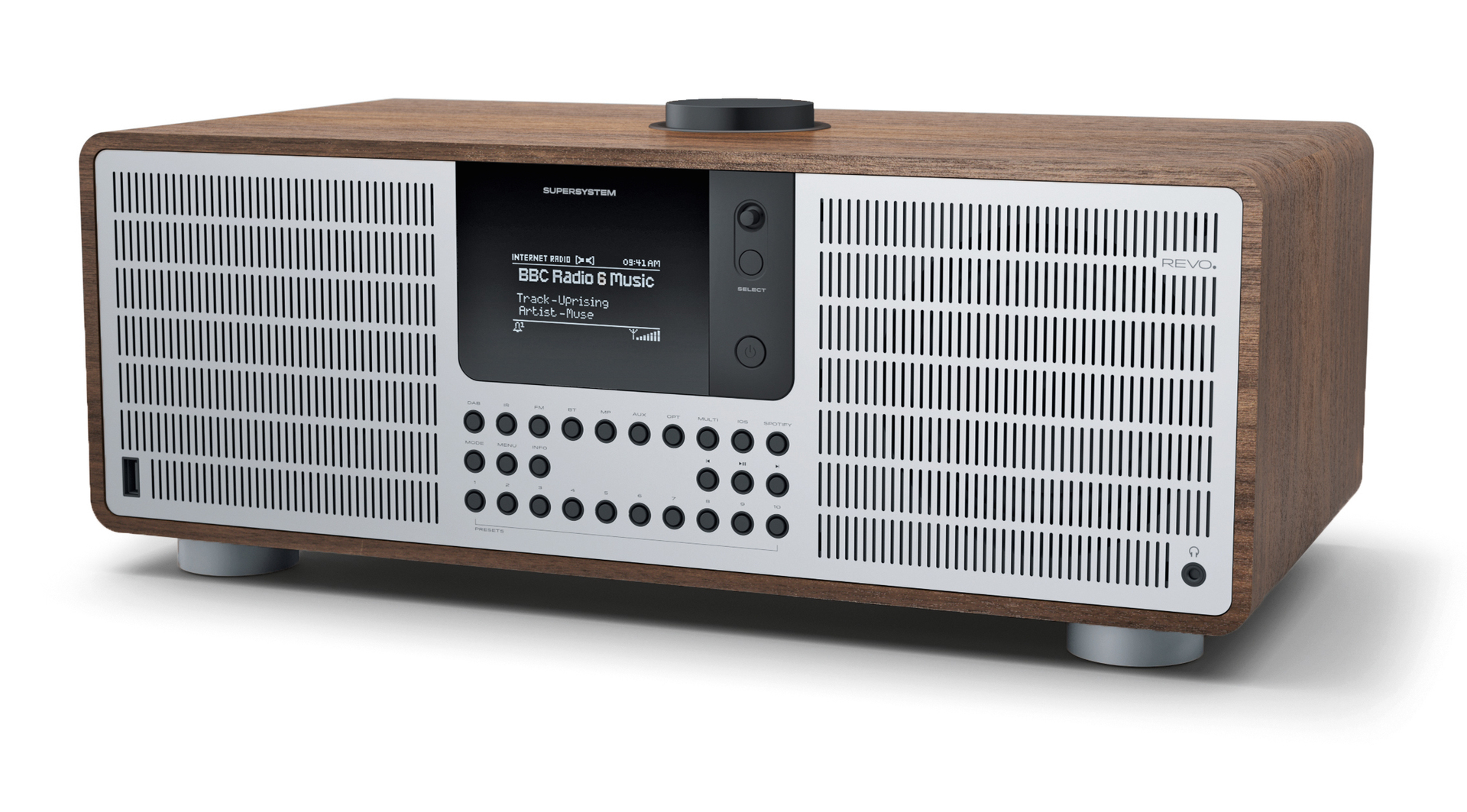 With high-grade materials, such as wood and aluminium, and its classic shape, the SuperSystem successfully invokes the age of analogue radio.