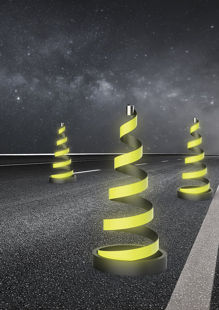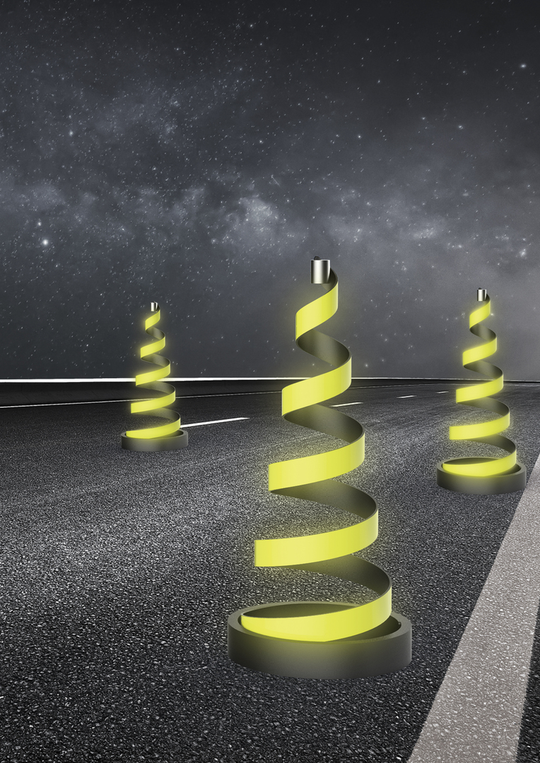 Traditional roadblock cones are bulky, not aesthetically pleasing and are easily toppled over. Inspired by the helix form, Swan Dance is a new design of roadblock cones that makes them easy to store and transport. The roadblock’s helix design is elegantly made of a PVC material and painted over with reflective paint. To store the cone, simply compress the cones by hand into a disc to be stacked and stored. The magnetic base of the cone further compacts and holds the cones together, making them even more convenient to carry.