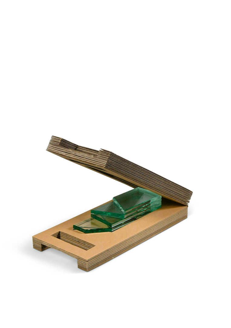 The Quartz Case serves as special packaging for the Quartz trophy, which is bestowed annually at the Swiss Film Award ceremony. To fulfil the need for a protective, practical and aesthetically convincing solution, the package is crafted as a single piece consisting of multiple layers of cardboard fitted exactly to the trophy. Easy to open like a suitcase, it houses the glass trophy safely inside. Held in place by tailored cut-outs in the material, the trophy still remains mostly visible when packed in the case. A magnetic lock complements and enhances the value of the packaging.