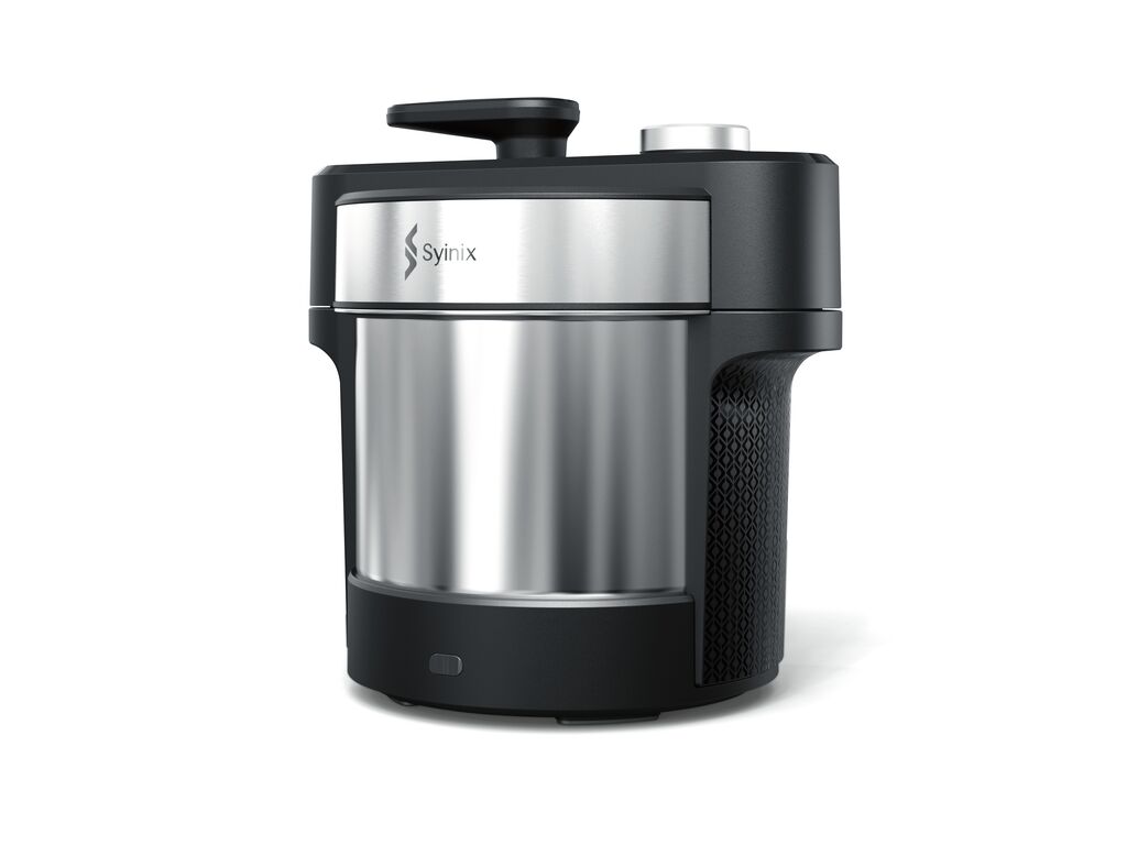Syinix S-mortar is a cooking machine designed for use in regions where many meals like fufu are still processed by hand. Thus, the product optimises hygiene and efficiency during preparation. For easy use, the design language is reminiscent of a cooking pot: the control elements such as the rotary knob are also intuitively designed. A window in the lid keeps the food visible at all times during operation. If the process is interrupted, the stirring blades stop automatically.
