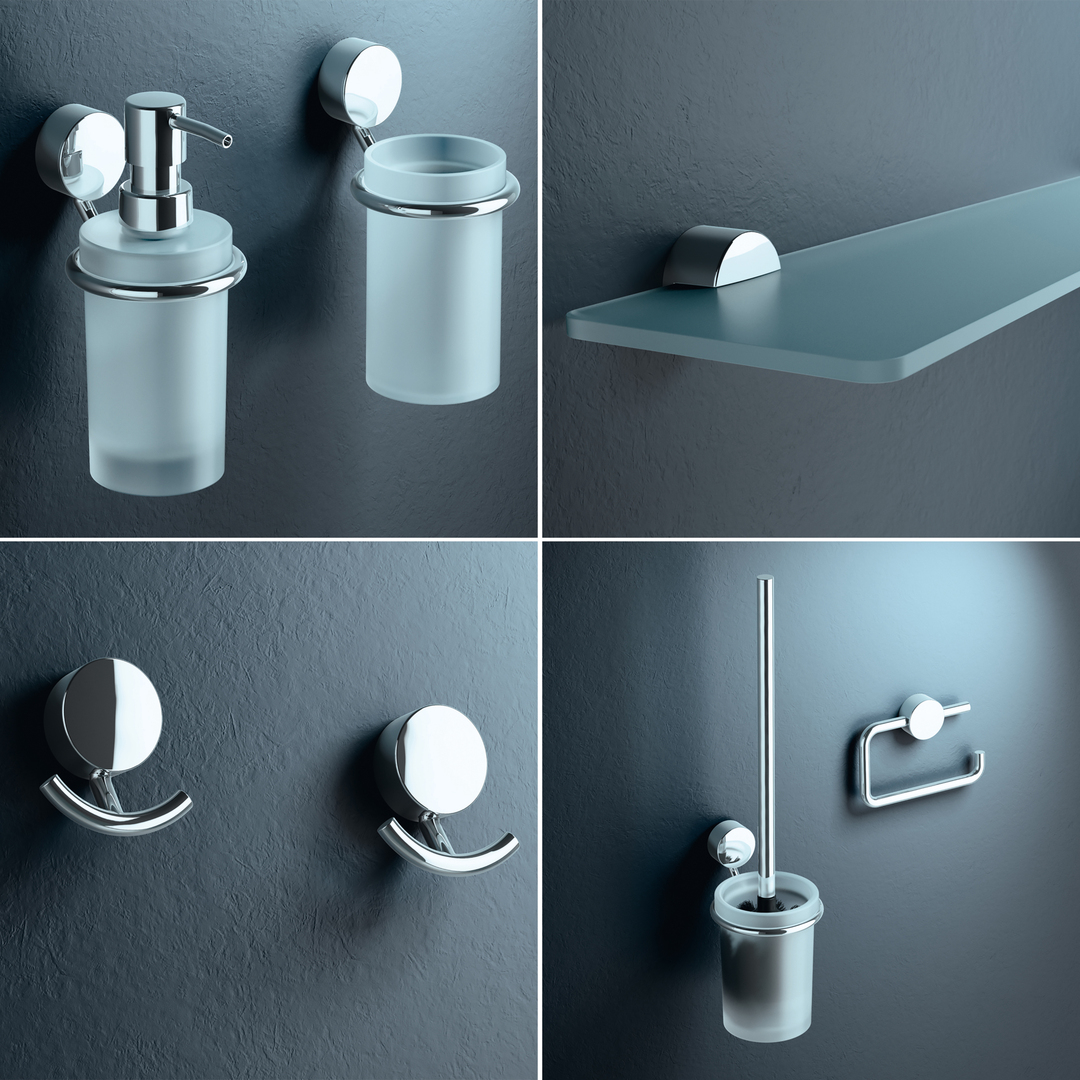 The design language of the System 815 sanitary system is founded on basic geometrical shapes. Despite the minimalist use of materials, this system has a convincingly high-quality appearance. The delicate design is highlighted by curved steel elements. Functional accessories for the washbasin, toilet and shower are available. The System 815 comes both in a chrome, high-gloss finish as well as in a bi-colour version. The sanitary accessories can be combined with extras that ensure improved comfort, such as a stool or a wheelchair accessible washbasin.