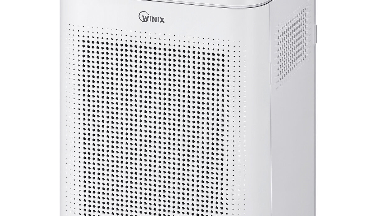 The T500 is an air purifier characterised by a compact shape. The lower part of the body has grooves that accentuate the white surface of the appliance. A digital control panel on the top ensures intuitive control. Up to 99.99 per cent of fine dust particles are removed in rooms of up to 19.8 square metres thanks to a 360-degree suction structure. With its compact design, the T500 can be accommodated in a space-saving manner. Its noise emission is a quiet 25 dB.