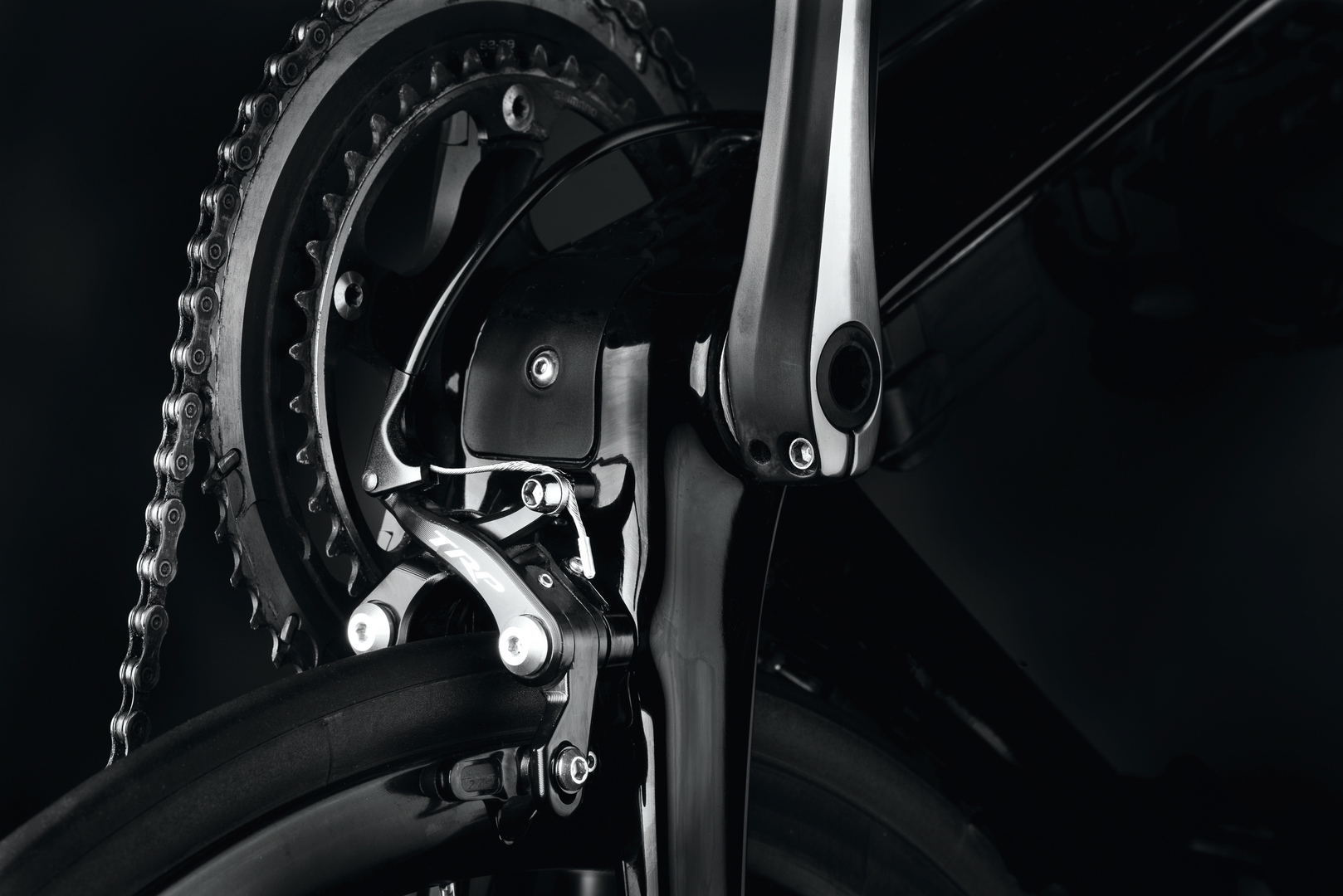 T851 features a low-profile cable stop, which was designed in the style of scissors especially for installation underneath the bottom bracket. A two-bolt mounting system keeps the bolts on the caliper, while four spring-adjusted mechanisms ensure high braking power. The arm adjusts automatically, com-pensating for wear of the brake pads. It also allows the use of modern rim widths from 21 to 28 mm. T851 weighs 180 grams.