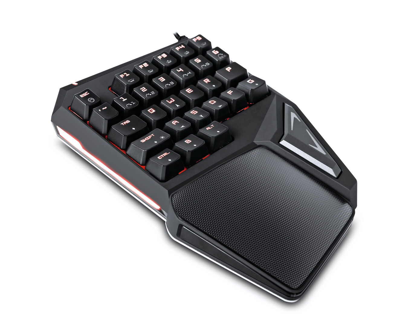 The T9plus is a mechanical single-hand keyboard providing the essential keys needed for the control of games. Its 29 keys are arranged according to frequency of use. With its special design, the keyboard can be placed on a desk in a position optimally suiting the gamer. Each key has a special switch providing a comfortable feel when operated, while also extending the life cycle of the keys. The RGB backlighting is configurable in ten different modes, fostering a special gaming atmosphere that is especially helpful in the dark.