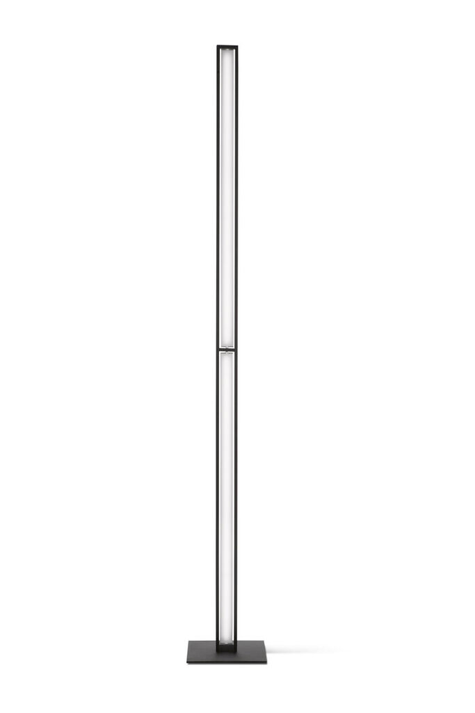 Arranged on a rotary axis, this floor lamp produces either clear and focused or diffuse illumination. The aluminium support allows the individual alignment of the light source and light beam, as well as the complete rotation of the lamp. With its two light sources, the Tablet_FL is equally suitable as an accent lighting as well as a wide-area room lighting. The floor lamp encourages to constantly change its position and is available in two versions, both with white or black finish.