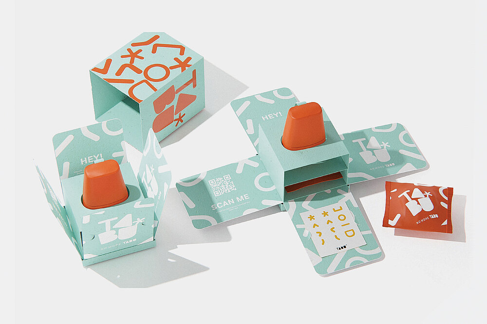 Tabu* would be provided at no cost to the user by charities, health authorities, and local governments. A QR code on the packaging directs users to the Tabu* app, which offers dependable, inclusive resources to reassure, educate, and inform. The app also facilitates open conversations about periods by creating a safe space for conversation and removing the loneliness, isolation, and embarrassment that can occur during this time. This digital environment offers educational material that can be used by individuals or in the classroom to increase knowledge and awareness about menstruation across genders and ages.