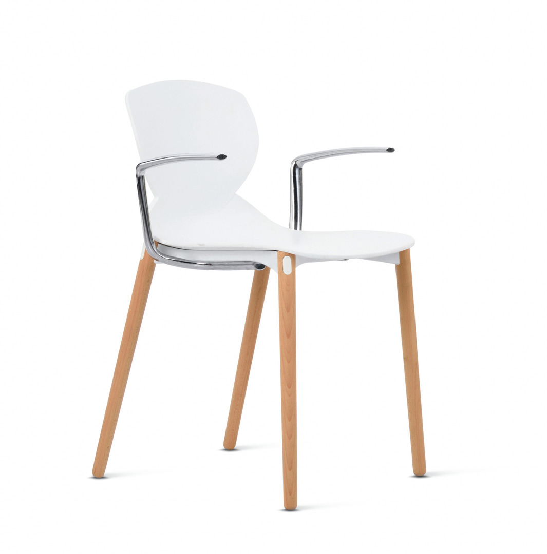 The formal characteristic of this chair is the back part of the chair body. This detail is not only highly aesthetically pleasing, it is also of structural importance, as it reinforces the junction between seat and backrest, which is the most critical point when considering the stability of a chair. Its clean lines and the well-balanced combination of materials make it stand out from alternative products.