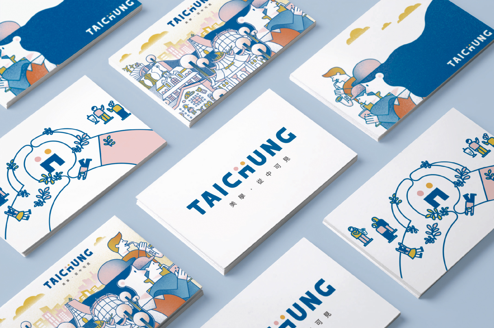 This brand design is particularly aimed to address the tourists in Taichung. Billboards and promotional items feature colourful illustrations which place the interaction between people and urban attractions centre stage. The colour of yellow stands for harmony, pink for comfort and blue for rapid develop-ment. Further key visuals are icons representing the sights. The simple and concise logo yields a modern appeal and gives the name of the city, with the letter “H” modified and showing two dots in the upper part to symbolise the exchange between two people.