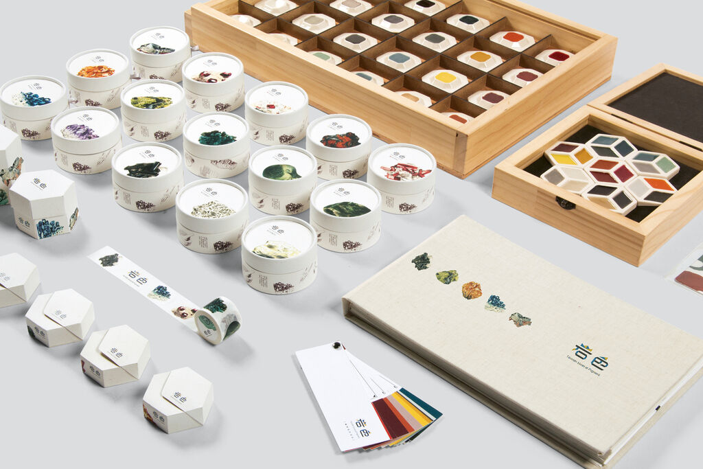 Many people are unaware that Taiwan produces numerous colourful minerals. This project aims to draw attention to local mineral resources by introducing a special paint made from mineral substances. The paint comes with specially designed plates which reflect the structure of the minerals through hexagonal or octagonal shapes. The accompanying book explains the characteristics of each stone, while lovingly implemented illustrations visualise the background of the minerals. By using a partly informal, painterly style, the imagery lends the publication a personal touch.