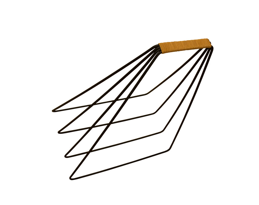 Tarantula is a geometrically shaped firewood holder that can be stowed away to save space thanks to its folding mechanism. Its airy design not only ensures a low weight of less than 1 kg, but also minimalist aesthetics. The black steel struts of the stand create an attractive contrast in combination with the stacked wood. Furthermore, the slight asymmetry gives it an exciting look. The uncomplicated assembly and disassembly also enables seasonal use.