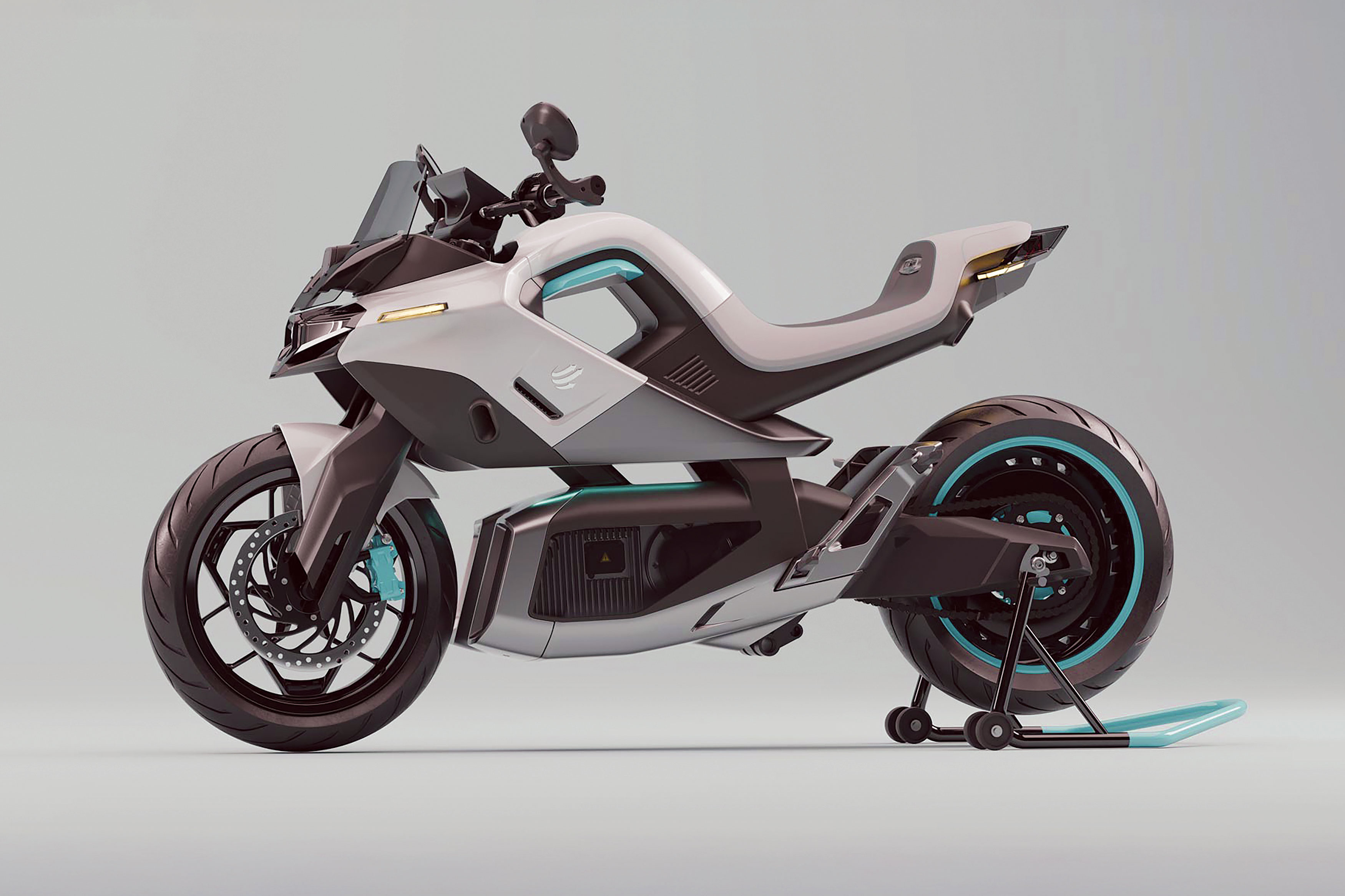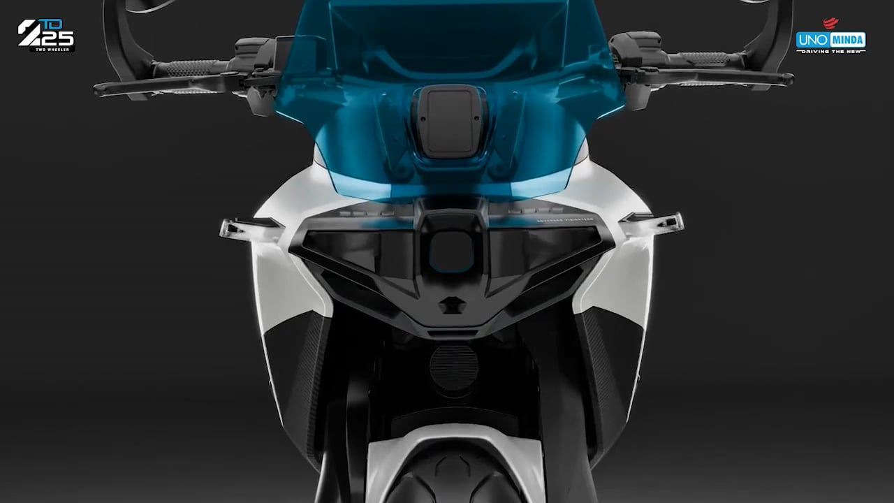 The 5-in-1 Integrated Power Unit merges the motor, OBC, DC-DC converter, PDU, and controller into a compact modular system. HALO lighting indicates charging and mode status. Transparent panels and contrasting accents showcase the electric powertrain. Additional features include a climate-controlled seat, 10-inch LED cluster, capacitive handlebar controls, wireless charging, and projection indicators. Prioritising lightweight engineering, the TD225 offers superior performance to traditional ICE motorcycles.