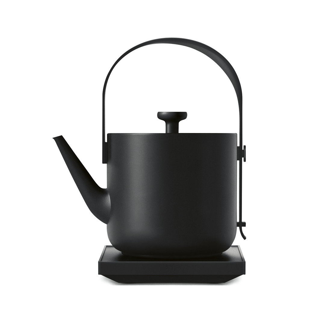The clear design of the Teawith Kettle conveys a strong sense of peace and relaxation. This well-proportioned kettle actively encourages users to prepare a cup of tea and enjoy it while reading a book. Its matte black surface is pleasing to the touch and perfectly suited for long-term use. The shapely, pleasantly high-grip handle with integrated switch is functional and ergonomically sophisticated.