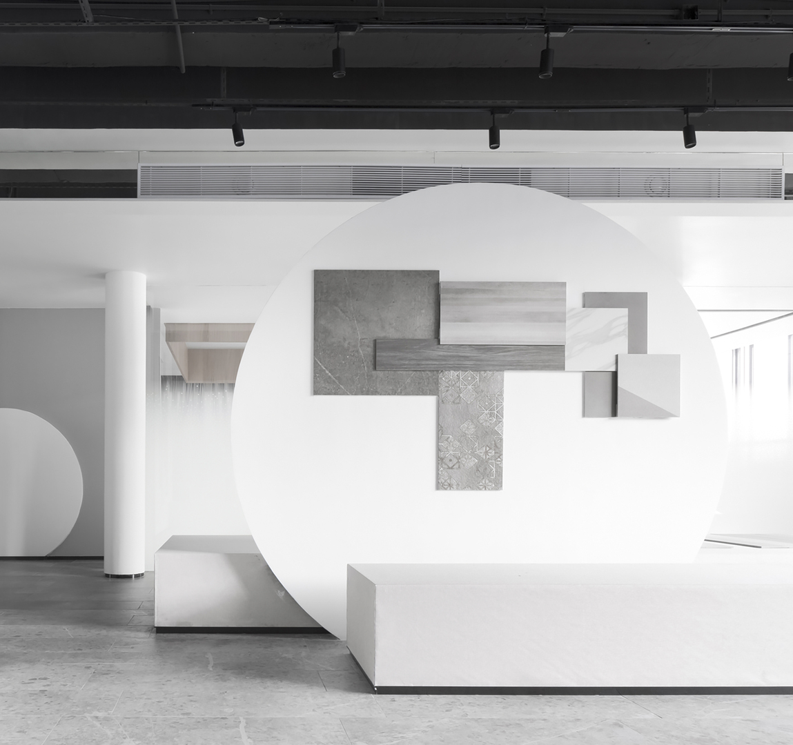 This is a space for displaying materials, set to the concept of starting on a piece of white paper. The process of choosing and arranging elements is much like painting and combining different possibilities. The division of space is matched to the experience of a visitor moving through it—a quiet and unrestrained sense of being is created for them. The lighting prescribes a line of movement, while the shifting lines blur the beginning and the end. The semicircular segmentation connects the boundaries of each section. Walking in it brings a rich and delicate enjoyment of varying perspectives and changing views. Different scenes bring about surprising experiences. The body becomes part of the soul of the space, and the space is being sculpted by the body at the same time. Red Dot Award: Design Concept | Ready to Launch | Public Space
