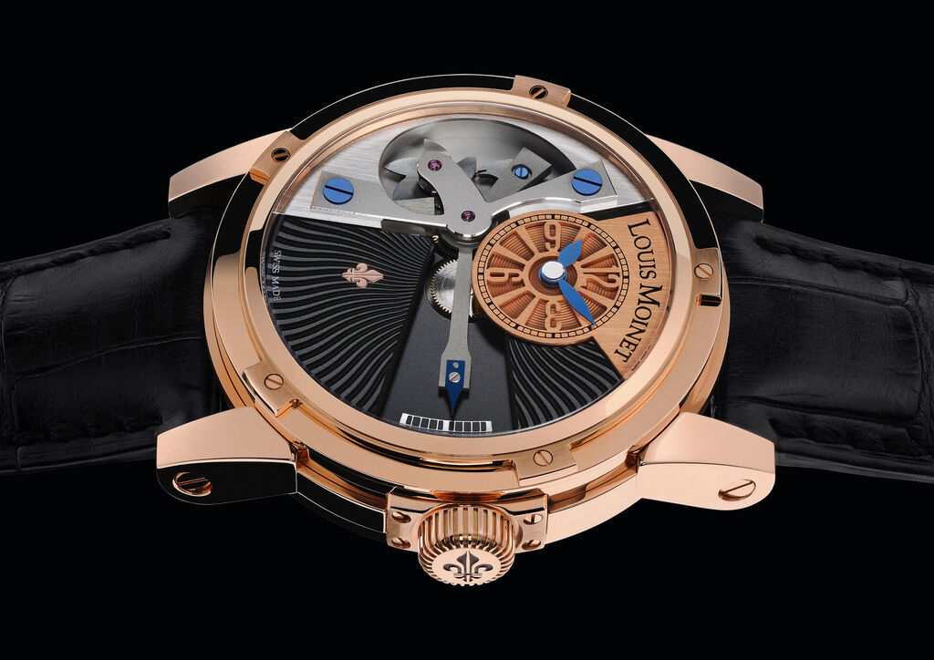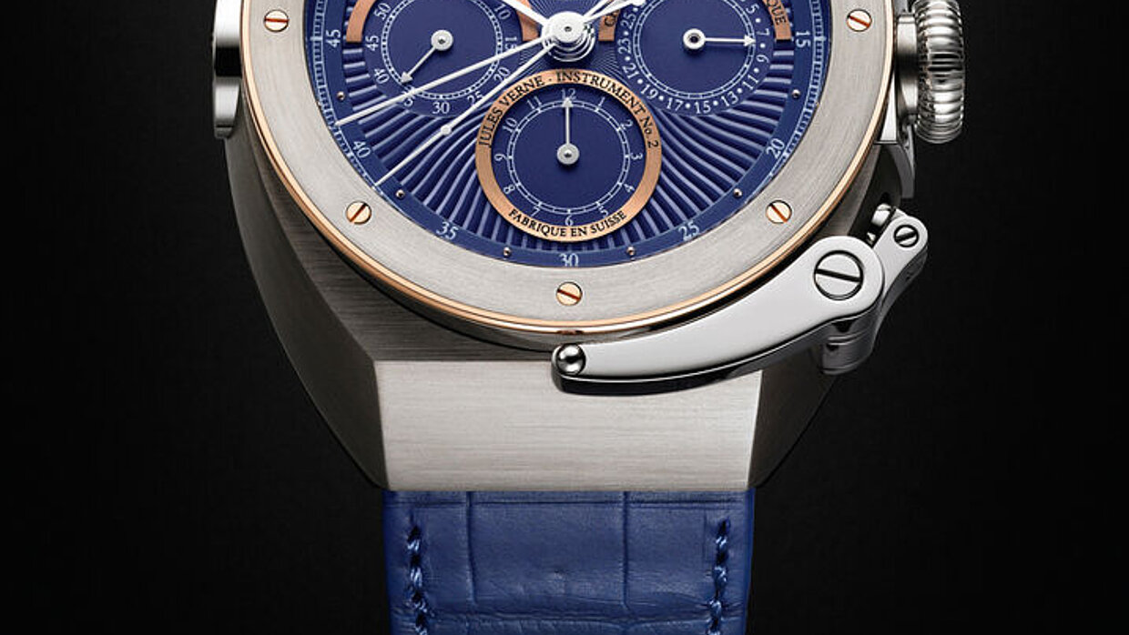 A distinctive feature of the Tempograph, which is embedded in a 45-mm-diametercase, is its retrograde seconds mechanism. This mechanism is guided by the following principle: after ten seconds the display resets and starts over again, a process realised by a special mechanism that is highlighted as the dominant accent in the centre of the watch. The wristwatch is powered by an automatic caliber, made up of 125 parts, that drives the second and minute hands. The case back is made of antireflective sapphire crystal and reveals the mechanical clockwork. Aficionados can choose between two different models, limited to 60 watches each.