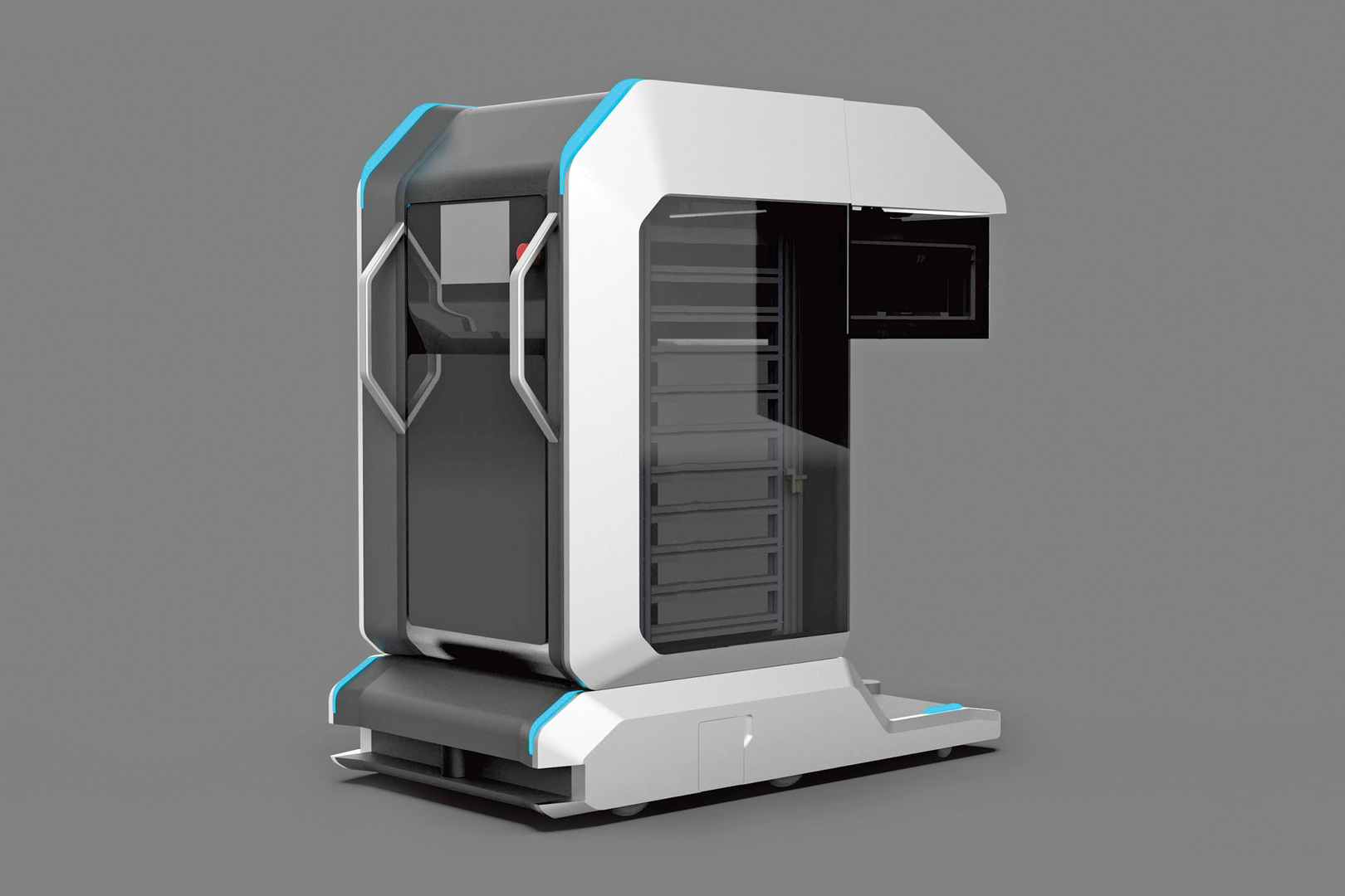 This mobile robot integrates laser radar, IMU data and TWO-DIMENSIONAL code map to achieve high-precision indoor positioning and navigation control. With a final positioning accuracy of 5mm, the robot can accurately manoeuvre to the targeted cabinet position.