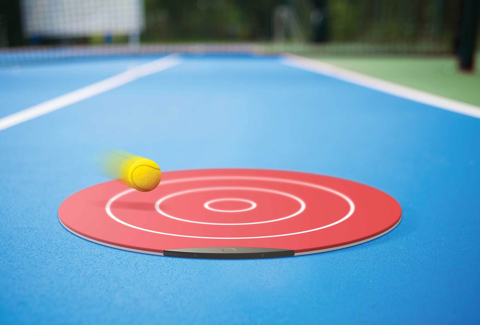 Tennis Mat is a silicone target mat that incorporates capacitive pressure sensors that measure the position and intensity of tennis balls that hit the mat, as well as visual sensors that measure the number of attempted shots. Data collected is automatically sent to a smartphone app, which evaluates the results and displays the information, allowing players to track their training and progress. The mat is double sided, allowing it to be used on tennis courts as well as other surfaces.