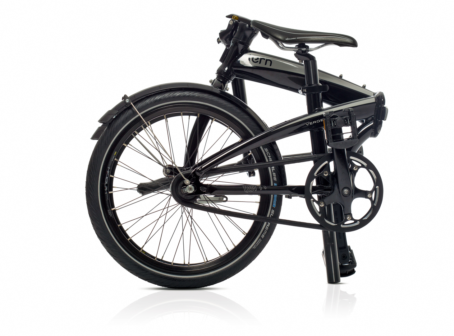 The Tern Verge Duo folding bicycle is characterised by a compact design, a clear and straightforward structure, and a dynamic form. An objective in its development was to guarantee a ride quality that is as smooth and safe as that of a standard bicycle. Also sought was a fast and intuitive procedure for folding the bike, while it simultaneously needed to be as compact and space-saving as possible. A key element of comfortable cycling is the stiffness of the frame, which ensures stability even on sporty rides.