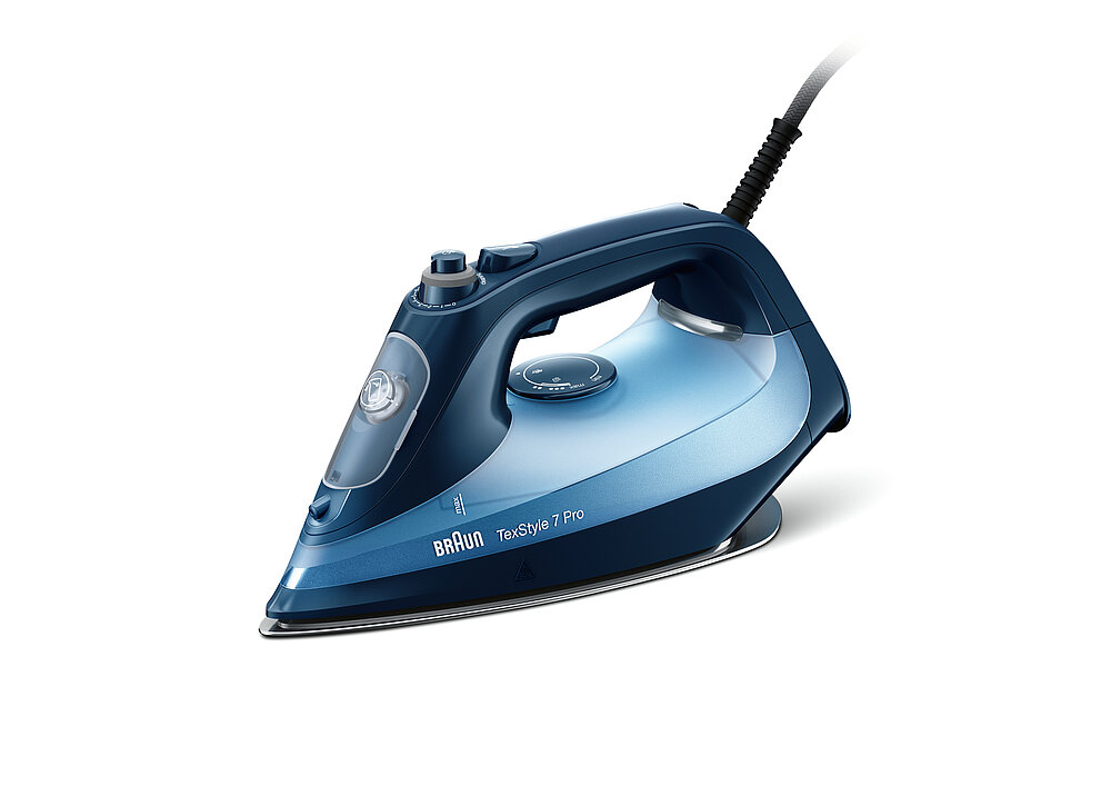 The TexStyle 7 Pro steam iron stands out thanks to its innovative soleplate, which can also be guided across any obstacles on clothing such as buttons, pockets and zips without getting caught on them. A special coating provides very smooth gliding properties to speed up the ironing process. Thanks to the soft-grip handle, the appliance sits securely in the hand and requires minimal effort. Available in different colours, this high-performance iron looks both robust and appealing.