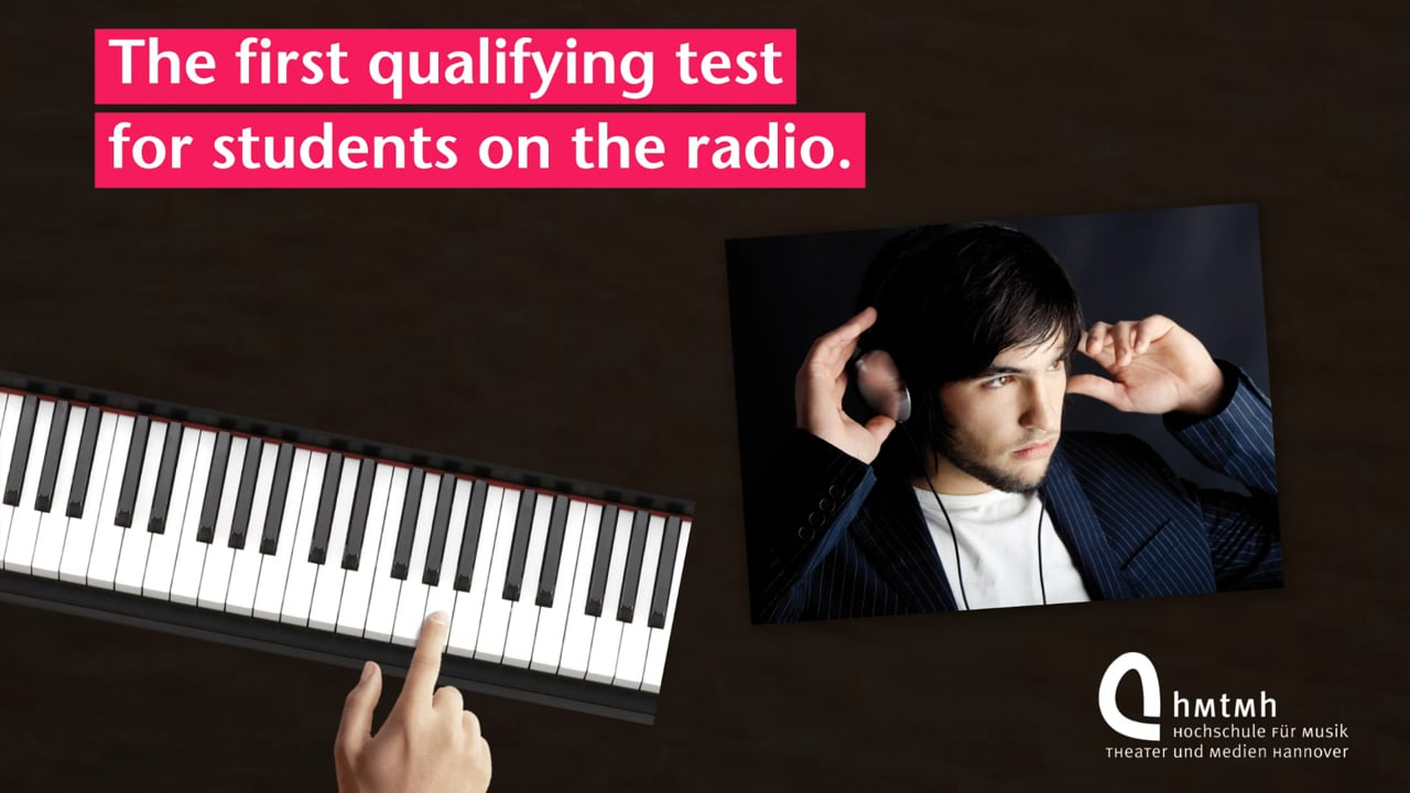 Young people with absolute pitch are a rather small, highly specific target group. Conceived as the “first official radio-based application procedure”, this radio commercial aims at this very target group, inviting young musicians to apply for courses in classical music at the Academy of Music, Theatre and Media in Hanover. In order to make sure that applicants are talented and possess the rare gift of absolute pitch, the radio commercial features a tone sequence that needs to be identified. When decoded, the sequence of note names forms the individual letters of the e-mail address to which applicants have to send their documents. Since people with the gift of absolute pitch can identify every tone on the musical scale without any device, they can easily decode the sequence by just listening to the melody and using the German scale system (C, D, F or A). Played on a piano, the musical sequence serves as a first challenge for applicants and thus turns the radio commercial into the first round of a qualifying examination. Statement by the jury »The trick of this radio commercial is that it links a call for applications to study music with a qualification test. The e-mail address applications have to be sent to is exclusively encoded as a musical sequence. This ensures that applicants belong to the target group and, in itself, represents a sophisticated design solution and implementation.«