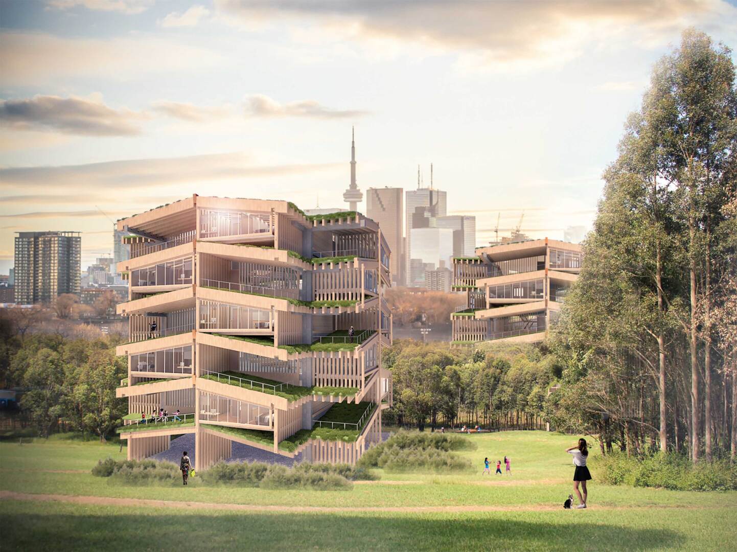 Agricultural Life Apartment imagines a modern rural life that is built around green spaces, a naturally evolving community and a closer relationship between work and home life. To preserve the natural environment, its high-rise timber structure is also architecturally sustainable.