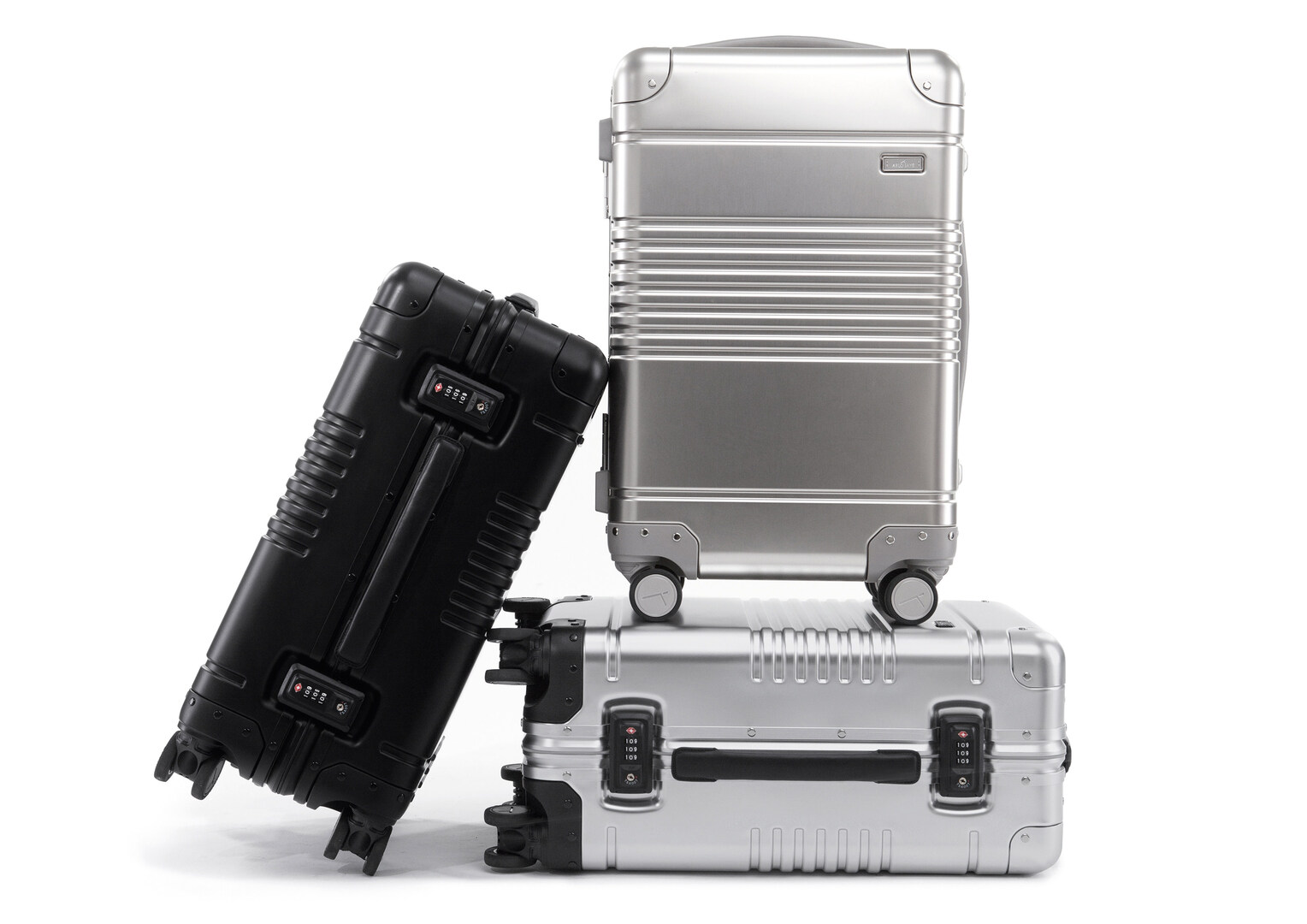 This suitcase is constructed using a light aluminium-magnesium alloy. The interior is clad with an anti-bacterial fabric. Adjustable compartments and fastening straps, make packing easily versatile. Thanks to specially made wheels, the case rolls extremely quietly. A built-in lithium ion battery for two USB connections is incorporated. This system, installed seamlessly under the handle, can be removed without the need to open the case. Four wheels with 360-degree radius make transport easy.