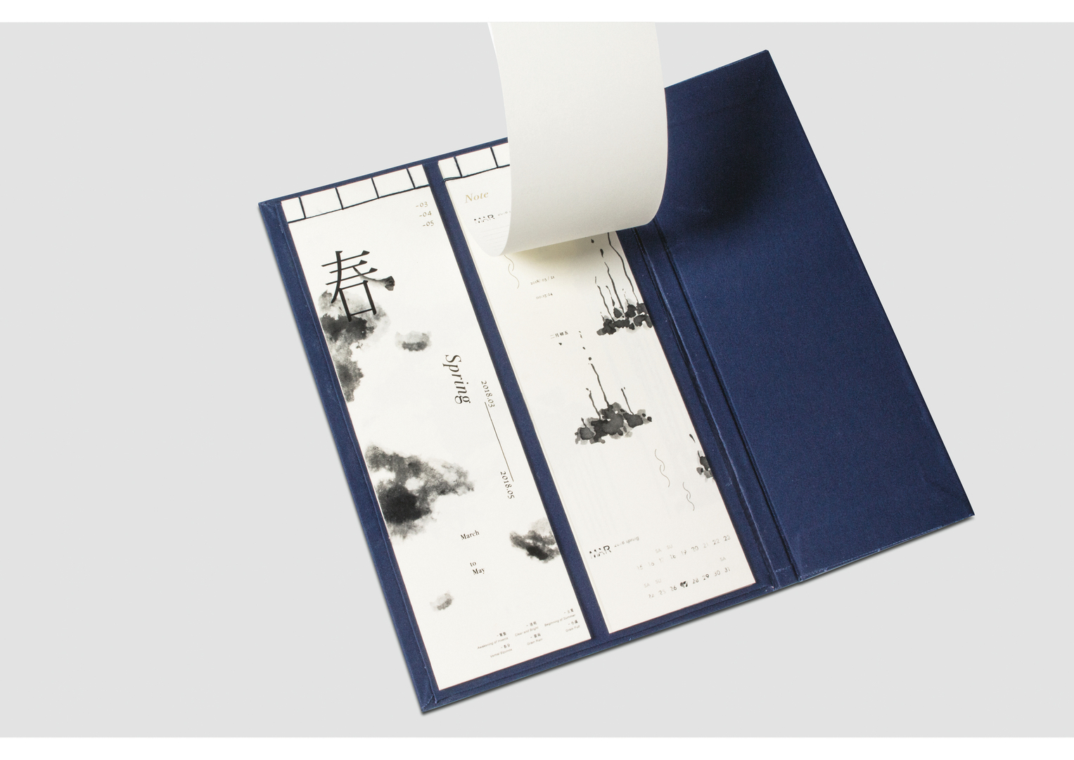 For thousands of years of Chinese tradition, the many forms and styles of ink and brush strokes have symbolised different things. This calendar uses this variety to depict the four seasons. Based on the idea that it accompanies users as they flip through the pages of each month, it demonstrates how ink painting is changing and evolving. In this way, it describes the characteristics of the four seasons – spring for example is symbolised as the season of reincarnation. At the same time, the calendar raises awareness of the cultural uniqueness of Chinese ink.