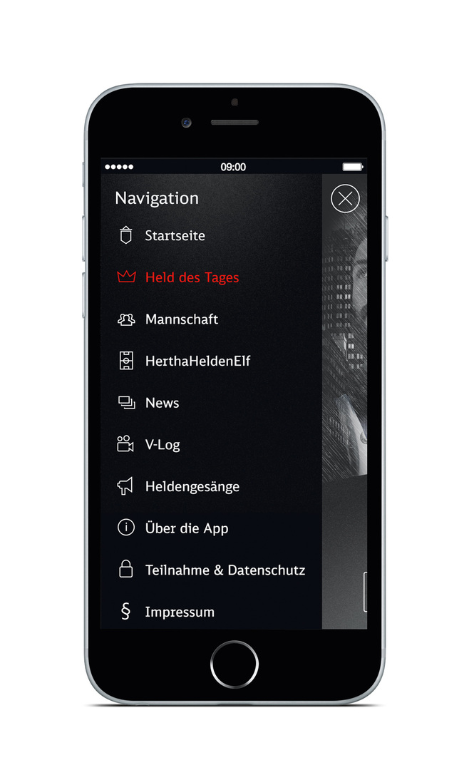 Deutsche Bahn created the HerthaHelden (HerthaHeroes) app to provide information about its sponsoring of the Bundesliga football club Hertha BSC. Football fans are invited to be part of the game by voting for their “hero of the day” live at the stadium. To this end, the app presents the line-ups, live statistics and background information. In addition, it also allows users to select their “dream team”, to share and com-pare it with others. The design challenge of making the corporate identity of Deutsche Bahn and the colours of Hertha come together is solved by creating a new look that is based on the almost mystical atmosphere of a floodlit match in the rain.