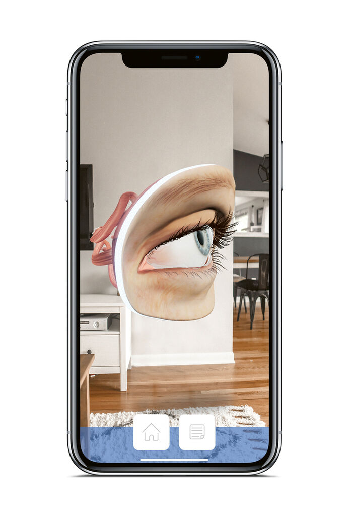 Starting this app, an oversized eye appears in the user’s space, which can be explored from all angles. In close consultation with the Ursapharm science department, different learning modules were designed for the app. The use of augmented reality opens up new possibilities in exploring complex subjects and making previously unseen processes visible. “The Eye” allows users to dive into the topic of eye health in an intuitive and playful manner.