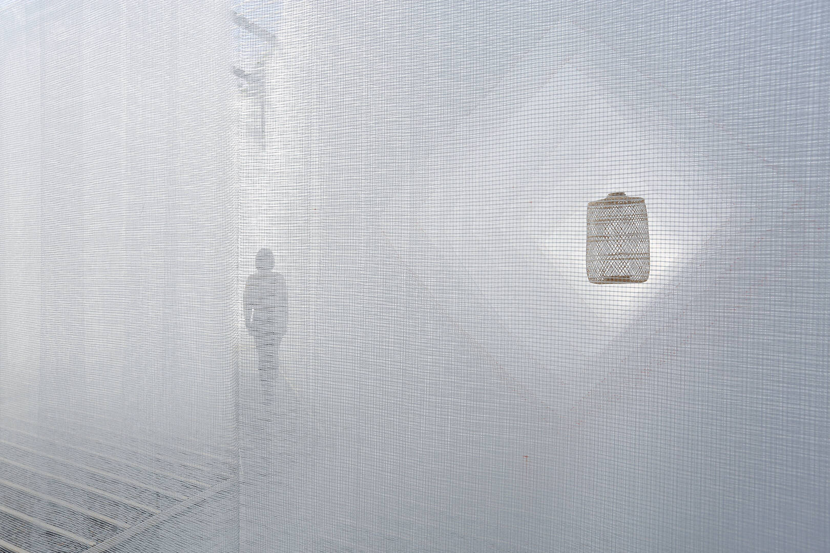 This art installation focuses on the transience of the past. It differentiates between a life lived offline and one lived online. The former focuses on e.g. actual meetings with people. In contrast, the life dominated by online activities is characterised by negative aspects such as the degradation of nature. Narrow paths guide visitors through the art installation like through a labyrinth that consists of transparent fabric banners. These only make it possible to see shadowy outlines of things – just like treasured memories are hazy and fleeting.