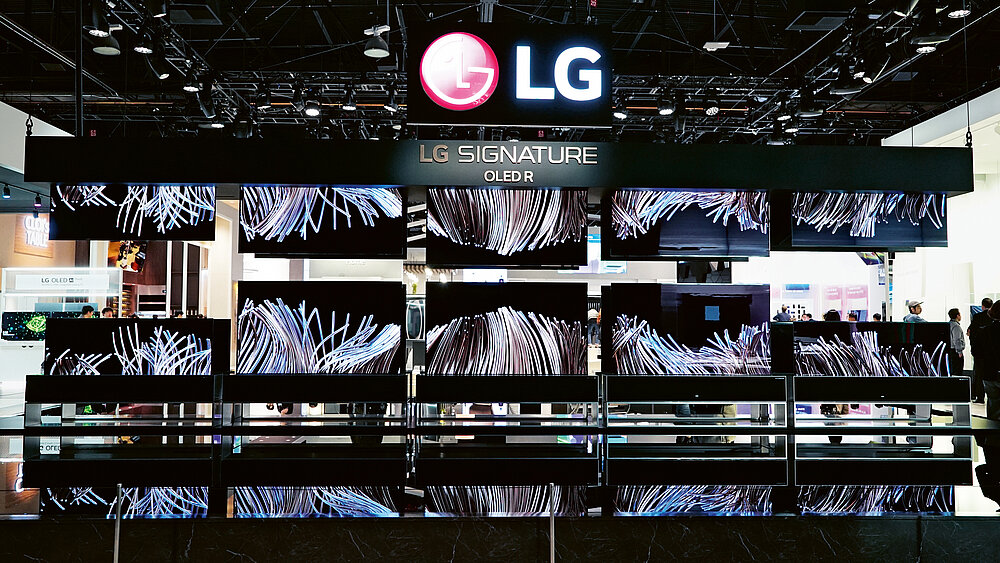 This exhibition design focused on highlighting the distinctive characteristics of the LG SIGNATURE OLED R, also known as the rollable display by LG. In front of a dark water surface, a total of 20 such displays were installed to demonstrate the possibilities of this screen in redefining the capability and the value of space. Beginning with the grand appearance of a Greek sculpture, which symbolises rollable displays as a powerful innovation, immersive content storytelling took the audience on a journey created by powerful colours and motions.