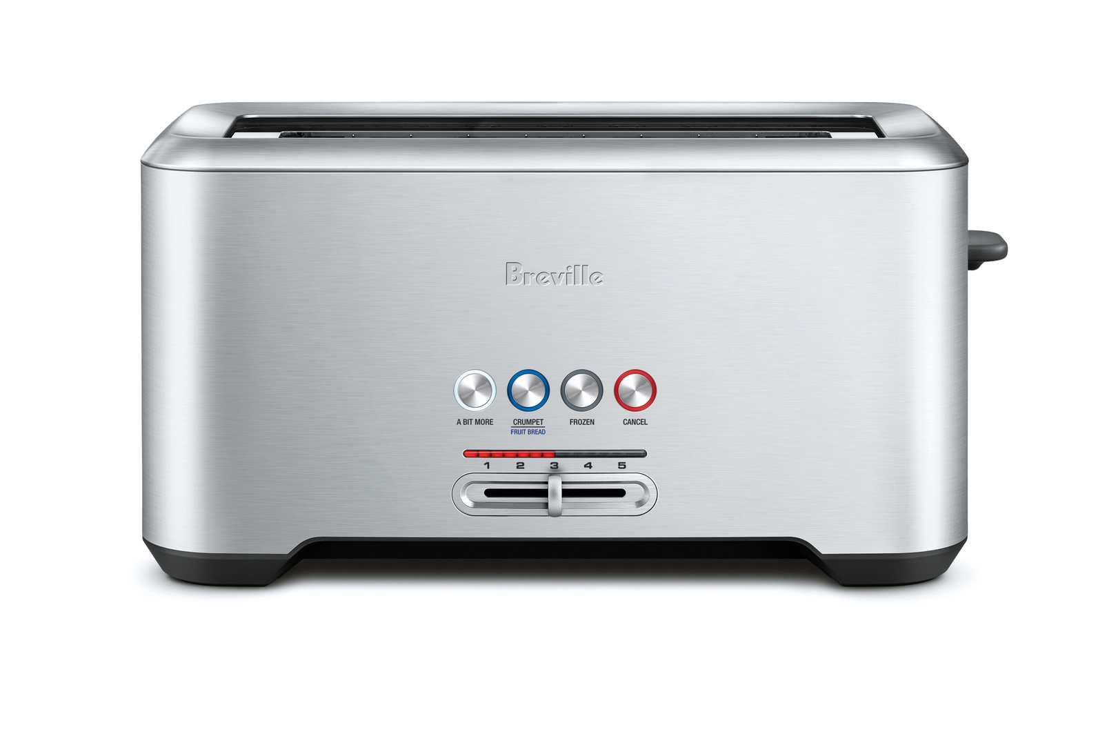 Four buttons in contrasting colours for additional functions dominate the purist aesthetic of the toaster and make operating easy.