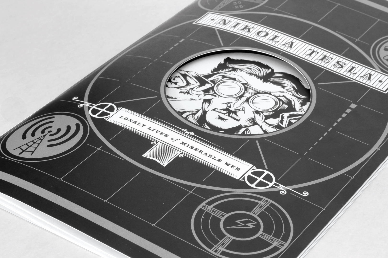 “The Lonely Lives of Miserable Men” represents the lives and accomplishments of lonely and forgotten individuals, such as Nikola Tesla, who helped shape the world we live in today. Tesla was responsible for powering the world with his alternating current, but is now relegated to the past without so much as a nod. This project employs the comic book format and sequential art to bring to light his life and achievements, and to communicate why his genius should be remembered today. The black-and-white ink drawings in this graphic novel tell the story of this electrical engineer, who was born in Croatia and emigrated to the USA, in detailed and elaborately crafted illustration. They invite readers to travel straight back in time to before the turn to the 20th century to experience and learn about Tesla’s inventions and his life full of personal drawbacks, by opening up a world of images that are marked by compelling distinction and expressivity.