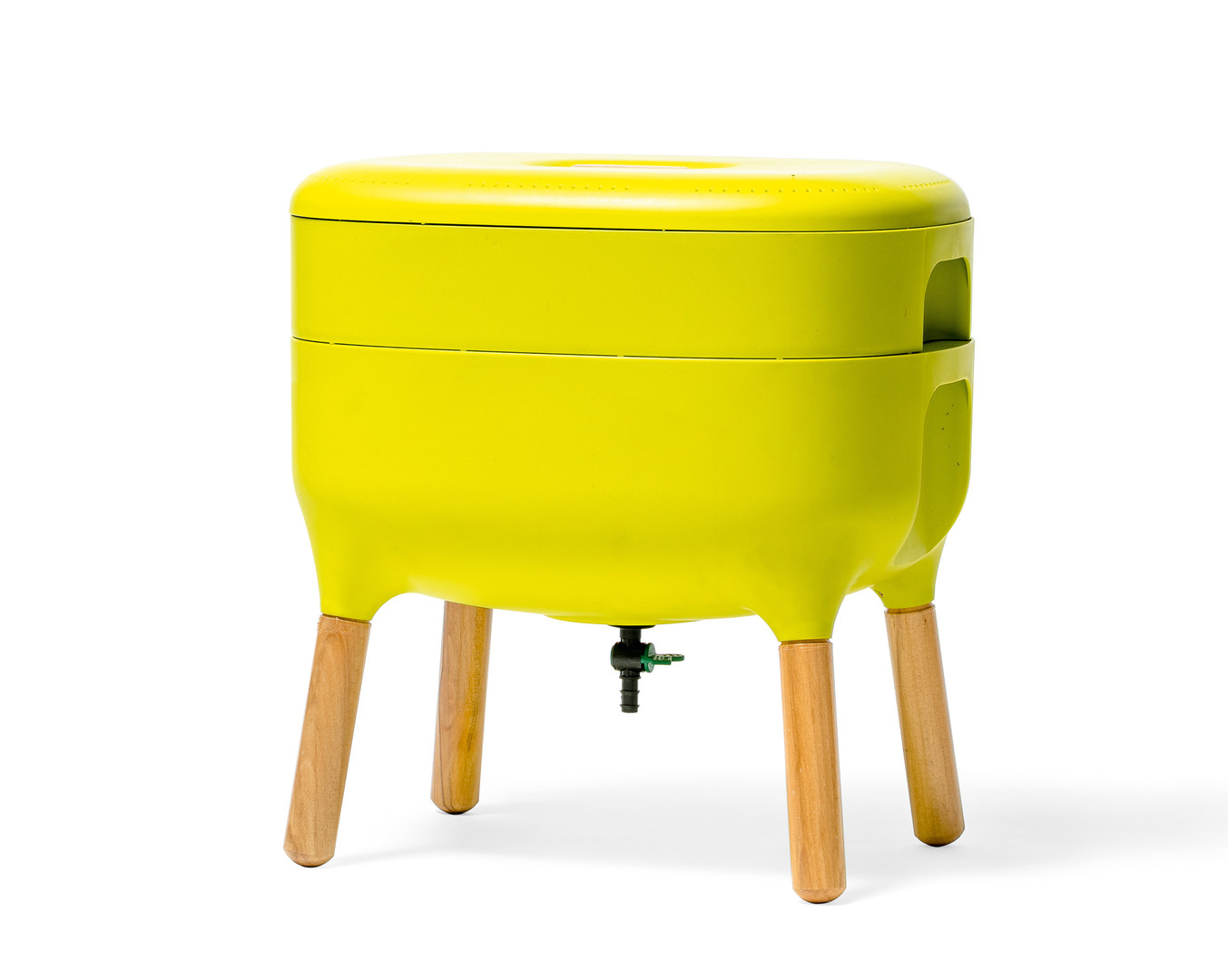 With its fresh colouration, the combination of wood and plastic, and an organic form, the Worm Farm has a timeless look and integrates well into a modern living environment.