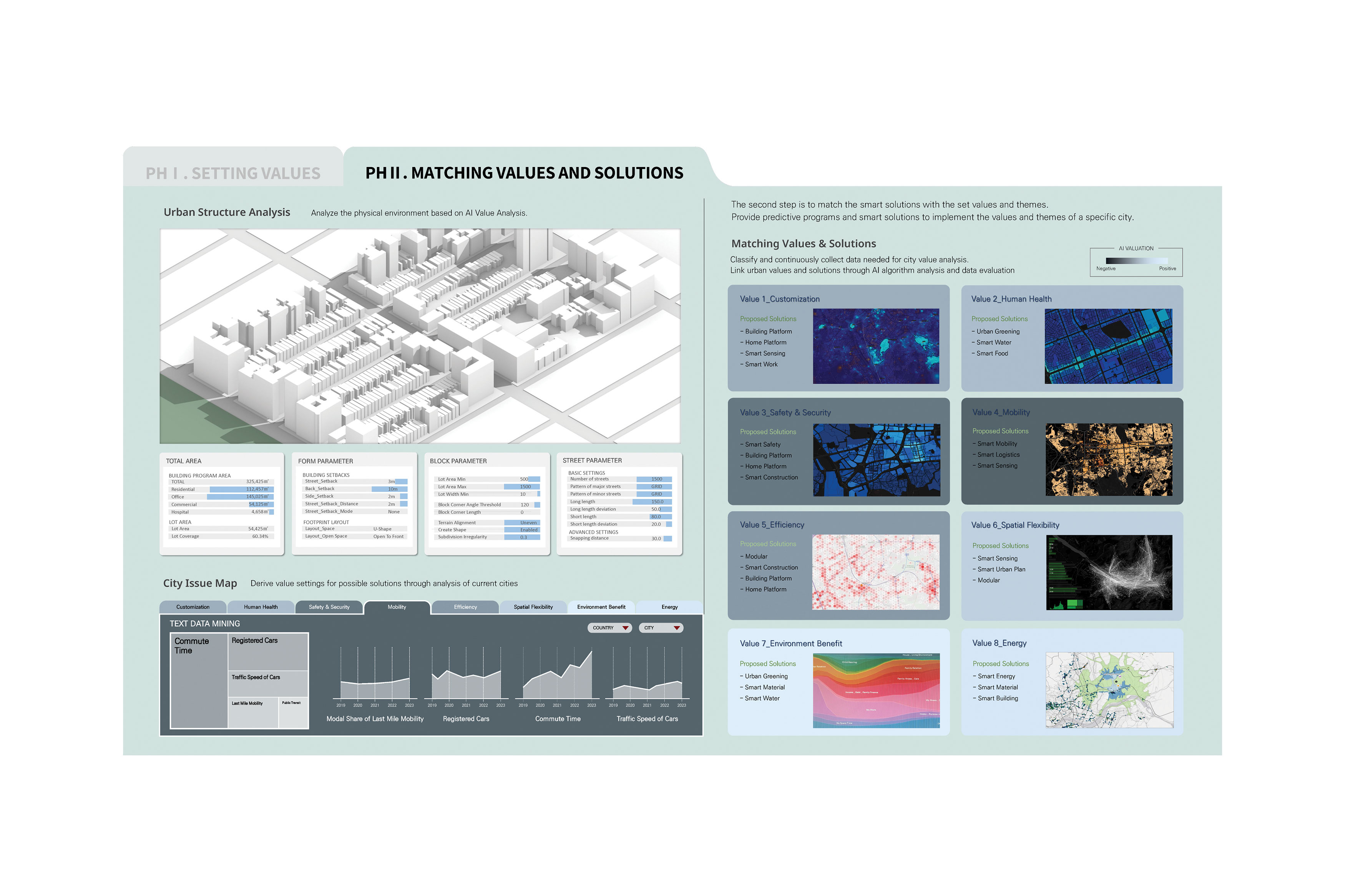 Data Meta Design is an AI-driven urban planning tool that uses city data to establish themes and values. It identifies and prioritises issues, matches smart solutions, and proposes applicable models. The system offers real-time, data-based analysis for objective decision-making by stakeholders. It continuously adapts to new data, ensuring relevant and sustainable urban development. Red Dot Award: Design Concept | Concept | Artificial Intelligence