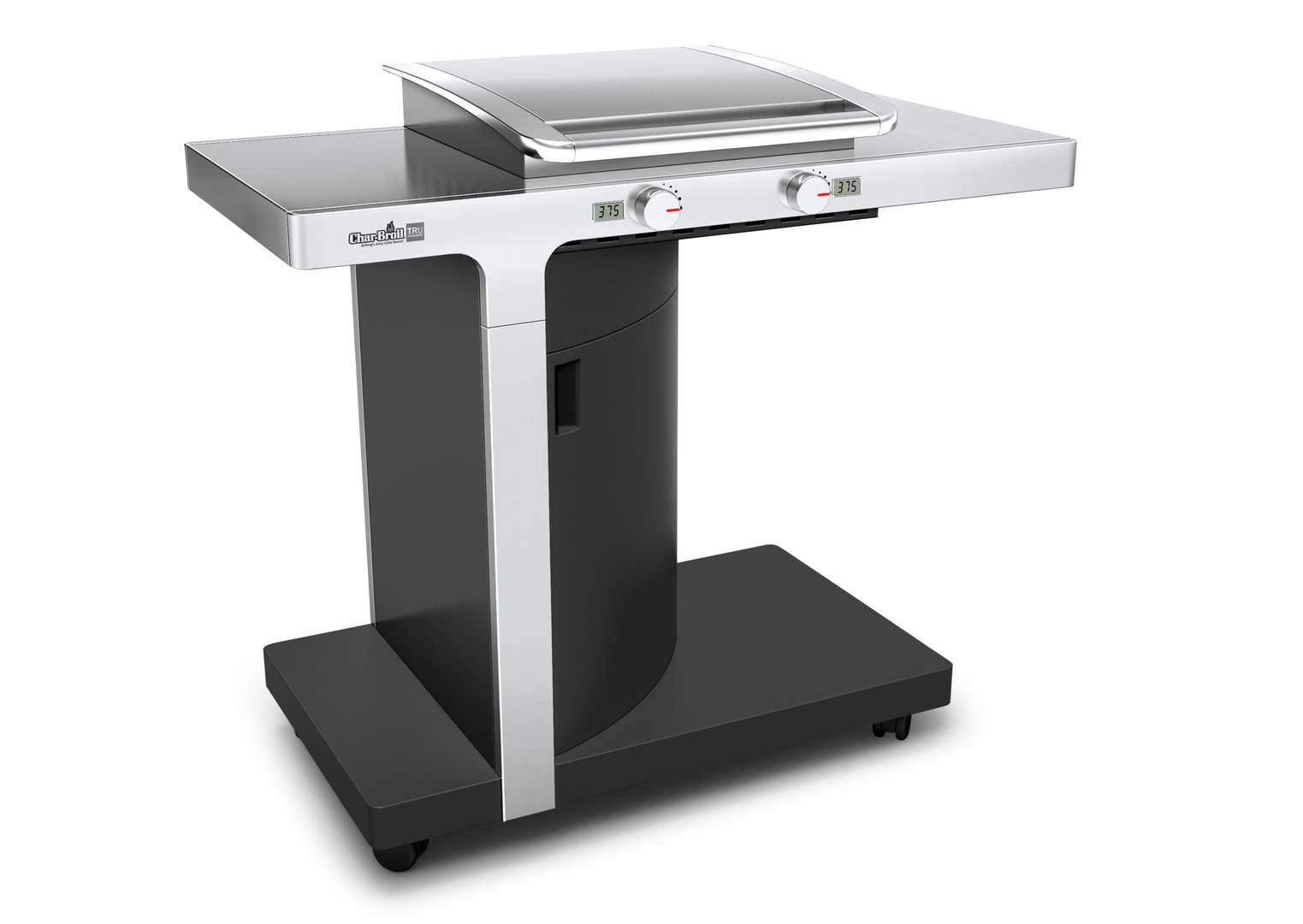 The Thin Grill is a propane gas grill equipped with patented infrared technology. This enables a particularly constant heat while the temperature is displayed on digital gauges. The cantilevered structure is largely open underneath the firebox, emphasizing the grill’s remarkably thin profile. The stainless steel surfaces are contrasted by the black, powder-coated metal of the base.