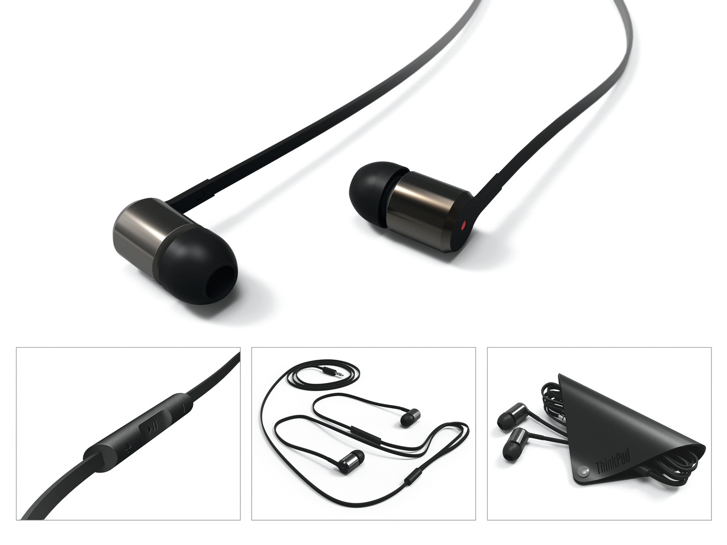 These headphones were primarily conceived for users of the ThinkPad X1 notebook, as well as for those who simp-ly place value on high-grade design and quality. The form of its anodised aluminium body harmonises with the ribbon-style cables. The headphones also provide optimised strain relief, tangle-resistant cables, integrated control buttons and a microphone. The clear, reduced design focusing foremost on audio quality is a characteristic feature of these headphones.