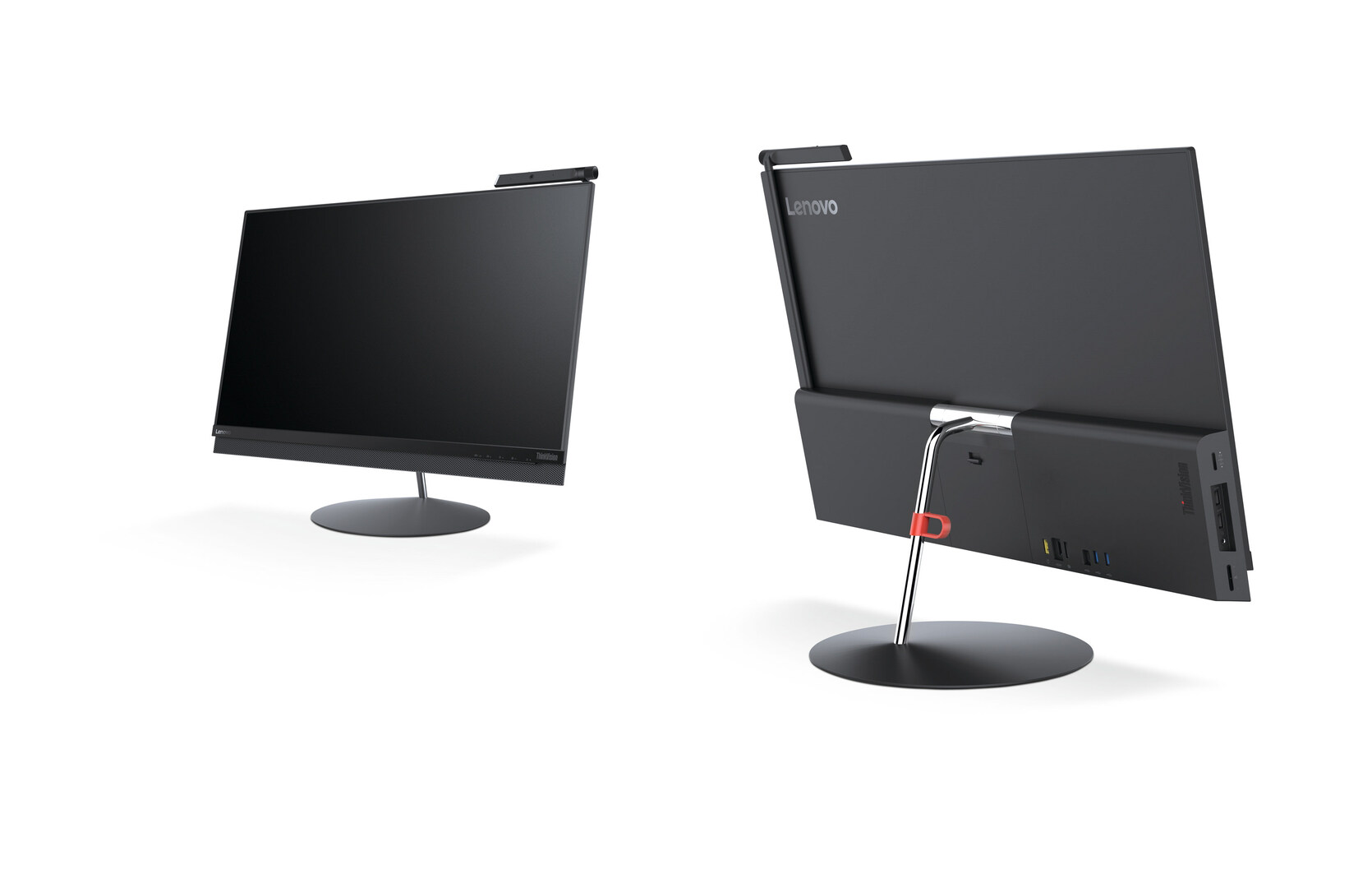 The ThinkVision X1 monitor has a nearly frameless 4K panel thanks to which the visible screen area could be laid out as generously as possible. A large number of video connections are included, as well as a USB C port, a sound system and a USB 3.0 hub. The tiltable stand has an almost delicate appearance, yet provides enough stability to safely support the 27” screen. The camera at the top can be swivelled and rotated by nearly 360 degrees to simplify the sharing of content.