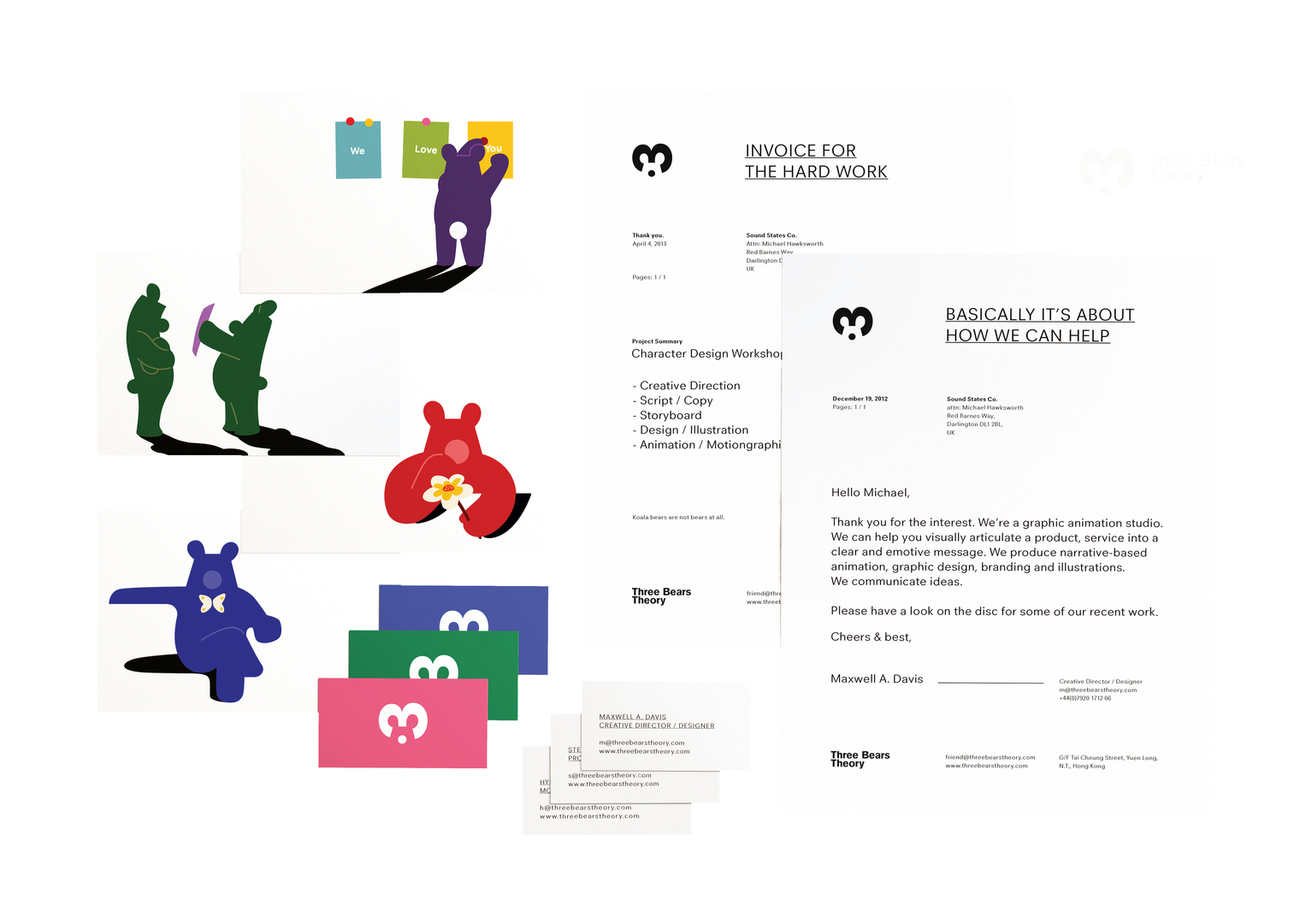 The philosophy guiding the Three Bears Theory, a graphic animation studio of three designers based in Hong Kong, is that meaningful stories can make a difference. Accordingly, the concept of its corporate identity is inspired by a popular fairy tale, Goldilocks and the Three Bears, a story about the simplicity of three choices. The logo features three circular shapes that represent the ears and the nose of a bear formed by the number “3”. This simplification also stands for the basis of the studio’s theory and how it approaches its work: with “maximum meaning, minimal means”, as the famous British graphic designer Abram Games once said. The mascot is a bear figure that is used vividly in many different poses, including on greeting cards, as animated gifs in newsletters or together with a note in an e-mail. Flexibly adaptable within the clear and distinctively designed corporate identity, this bear lends the identity a humorous and at the same time highly personal touch. Statement by the jury »The logo of this corporate design stands out because it consists not only of the bear but also the number three, merging them in a very straightforward and consistent manner. The story of the three design partners manifests itself in the application of this work, expressed in the form of a fairy tale and reflecting the playful as well as emphatic qualities of the designers.«