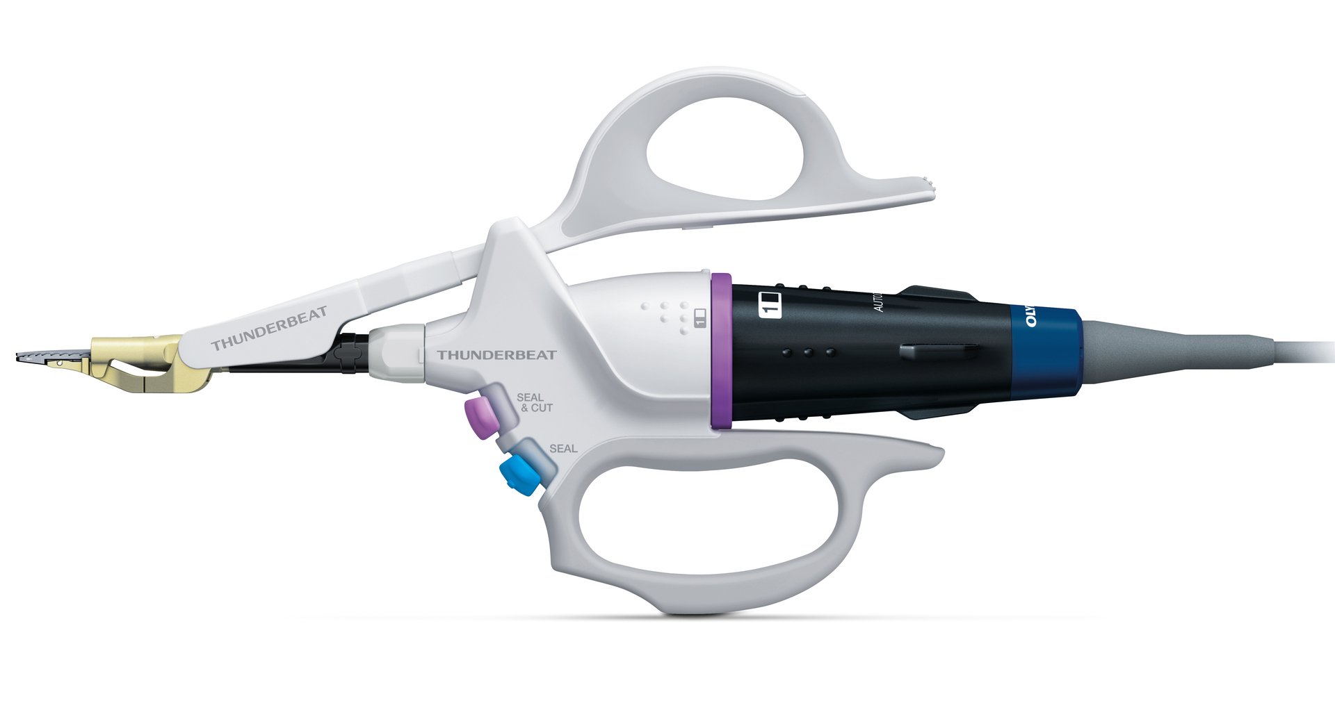 The Thunderbeat Open Fine Jaw surgical tissue management system combines a high-frequency current with ultrasonic technology and can cut as well as seal tissue and vessels in a single step. The scissor grip ensures precise operation. The reduced weight and optimised point of balance within the palm of the hand prevents fatigue. The instrument’s curved, fine tip enables precise tissue dissection.